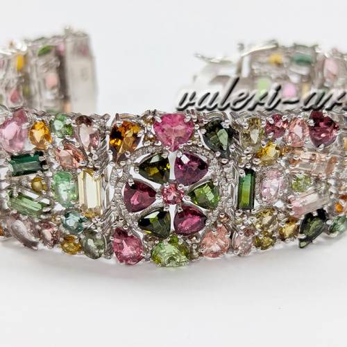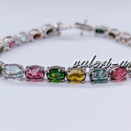 #0004502 Браслет с турмалином и бриллиантами из серебра 925