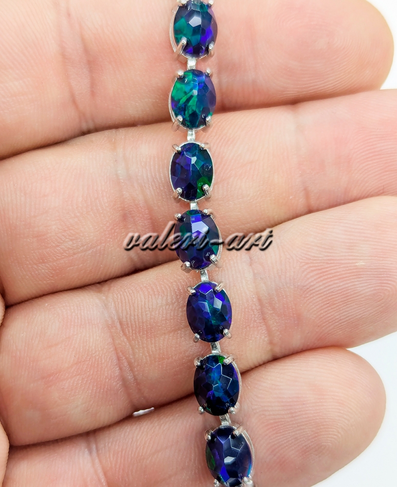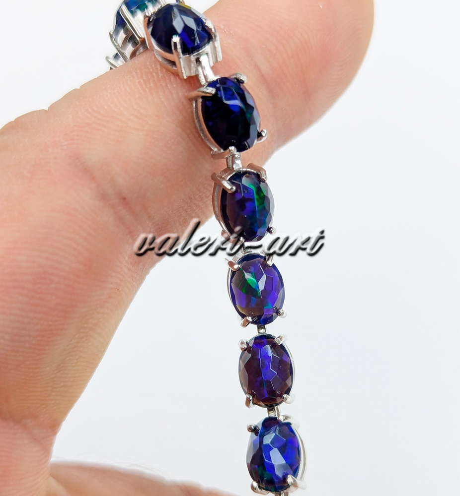 Браслет с черным опалом серебряный