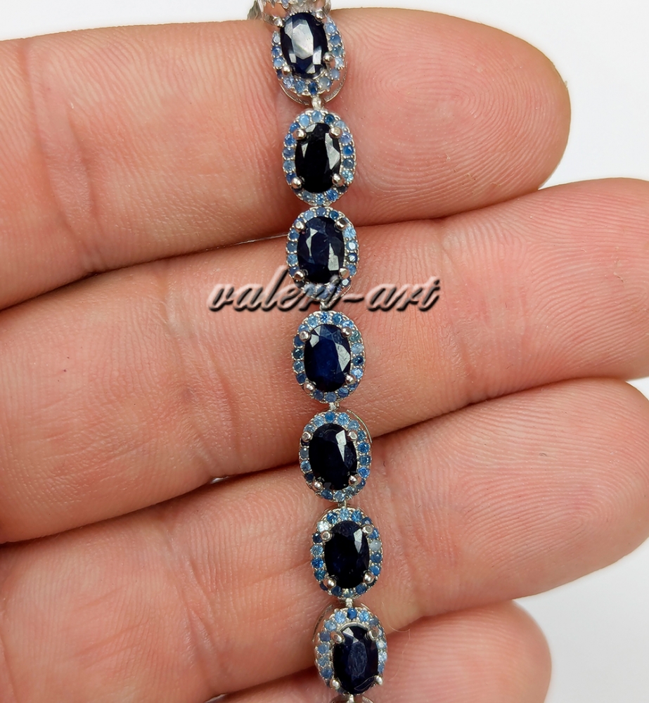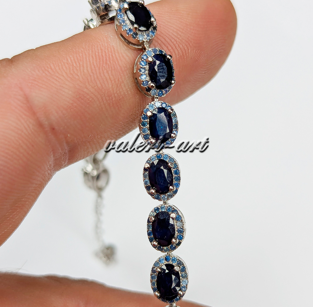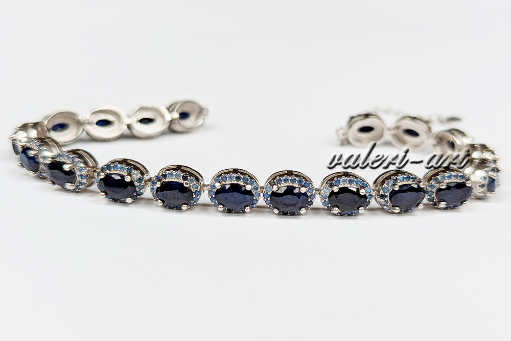 Серебряный браслет с натуральным танзанитом и сапфиром