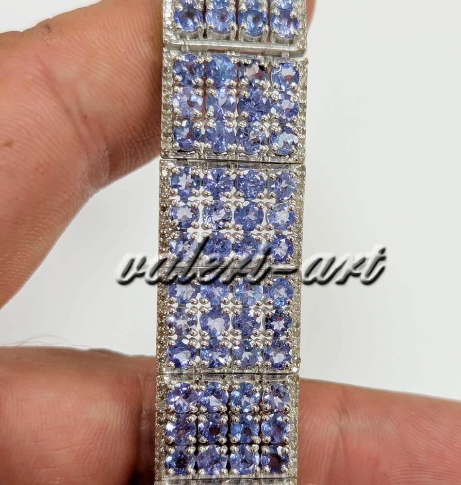 Серебряный браслет с натуральным танзанитом и бриллиантами