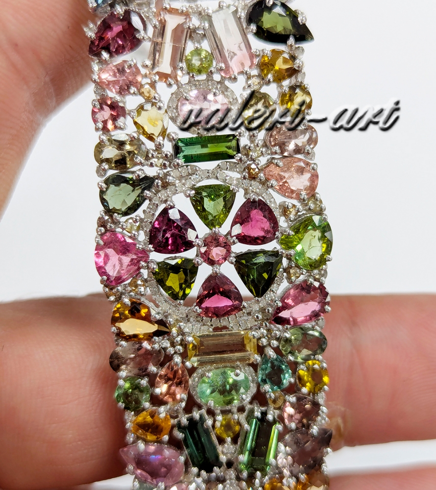 Серебряный браслет с натуральным турмалином и бриллиантами