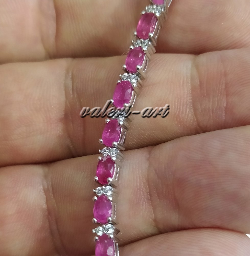 серебряный браслет с натуральным рубином