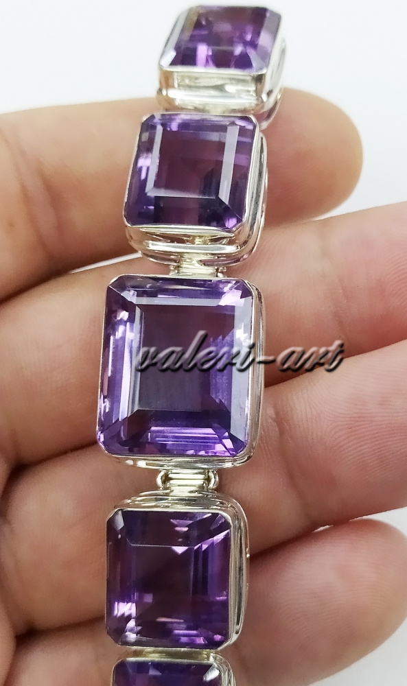 серебряный браслет с натуральным крупным аметистом