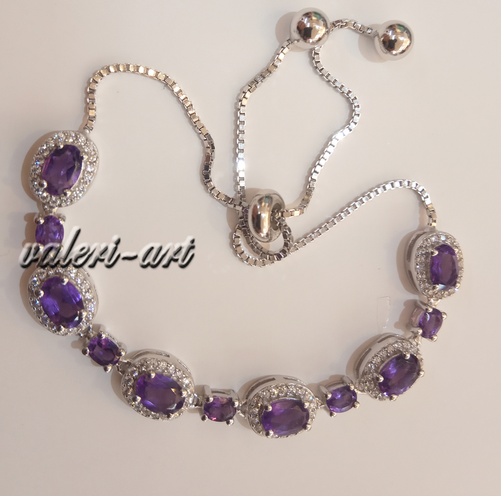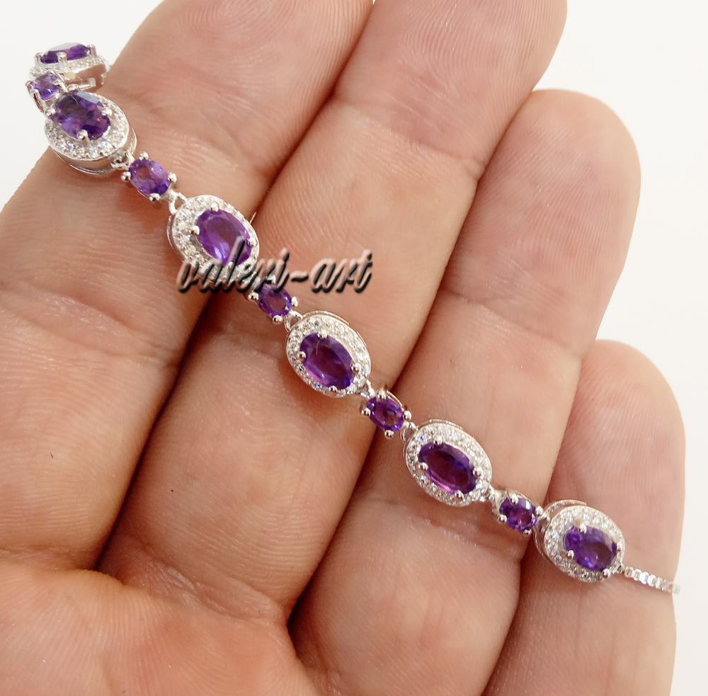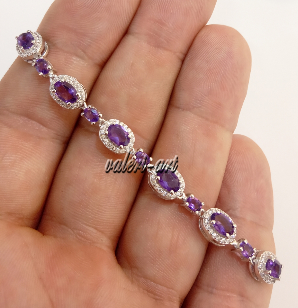 Стильный браслет из аметиста и серебра 925 пробы. Классическое сочетание цветов в классическом дизайне, всегда беспроигрышный вариант! Интересный, яркий, обязательно станет вашим самым любимым украшением! Использовано качественное серебро 925 пробы. Вы можете выбрать понравившиеся изделия или украшения из нашего каталога, в котором представлен широкий ассортимент украшений, подарков, сувениров, амулетов, оберегов, талисманов, колье, бус, браслетов, колец, серёг, ожерелий из камня аметист. А также узнать лечебные и магические свойства камня, посмотреть фото украшений и ювелирных изделий, подобрать камни по знакам зодиака и амулеты из драгоценного камня аметисты.