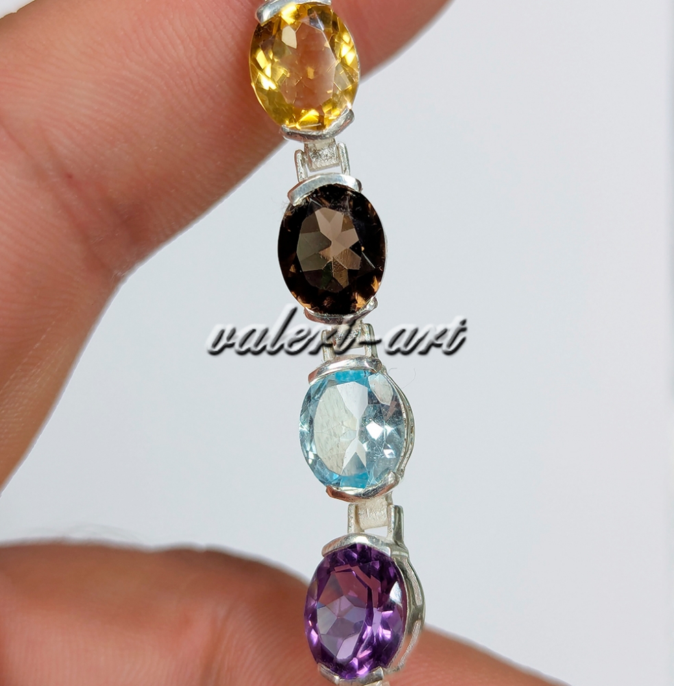 Серебряный браслет с натуральным аметистом цитрином топазом раухтопазом празеолитом