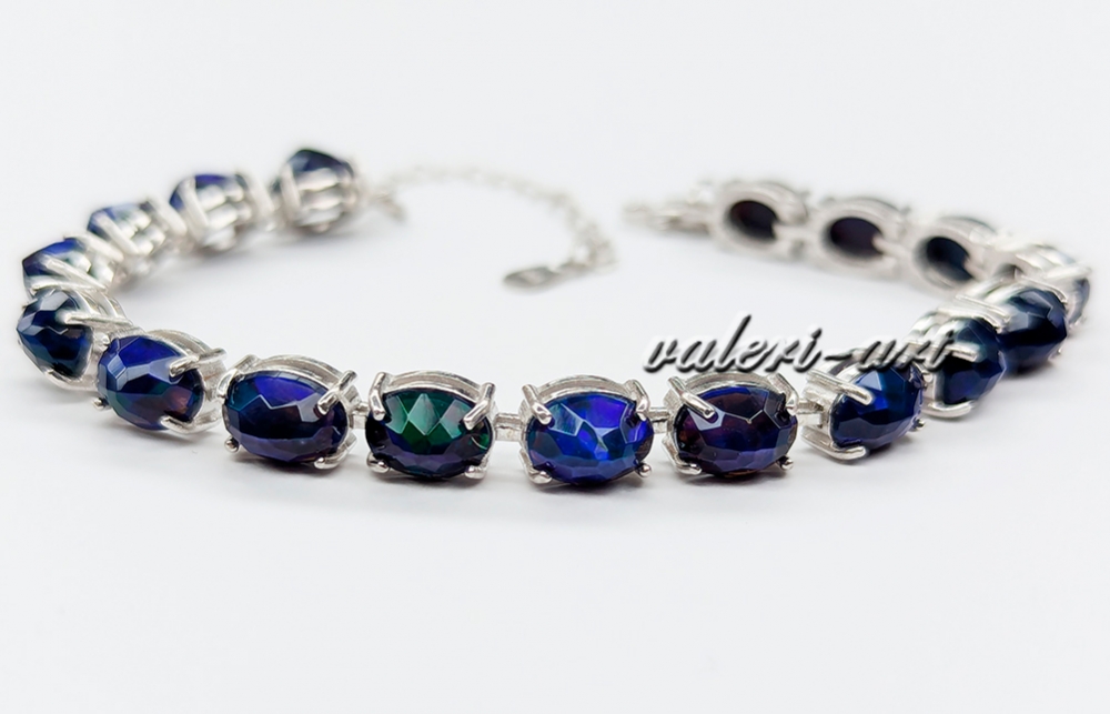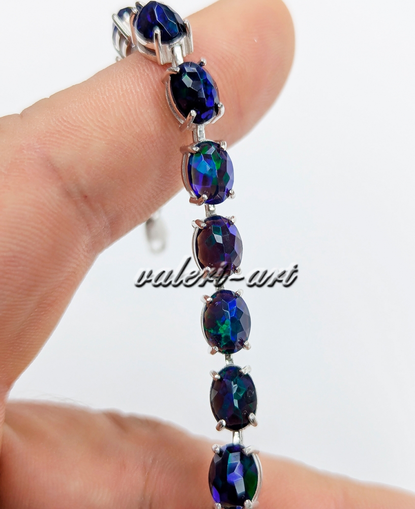 Браслет с черным опалом серебряный