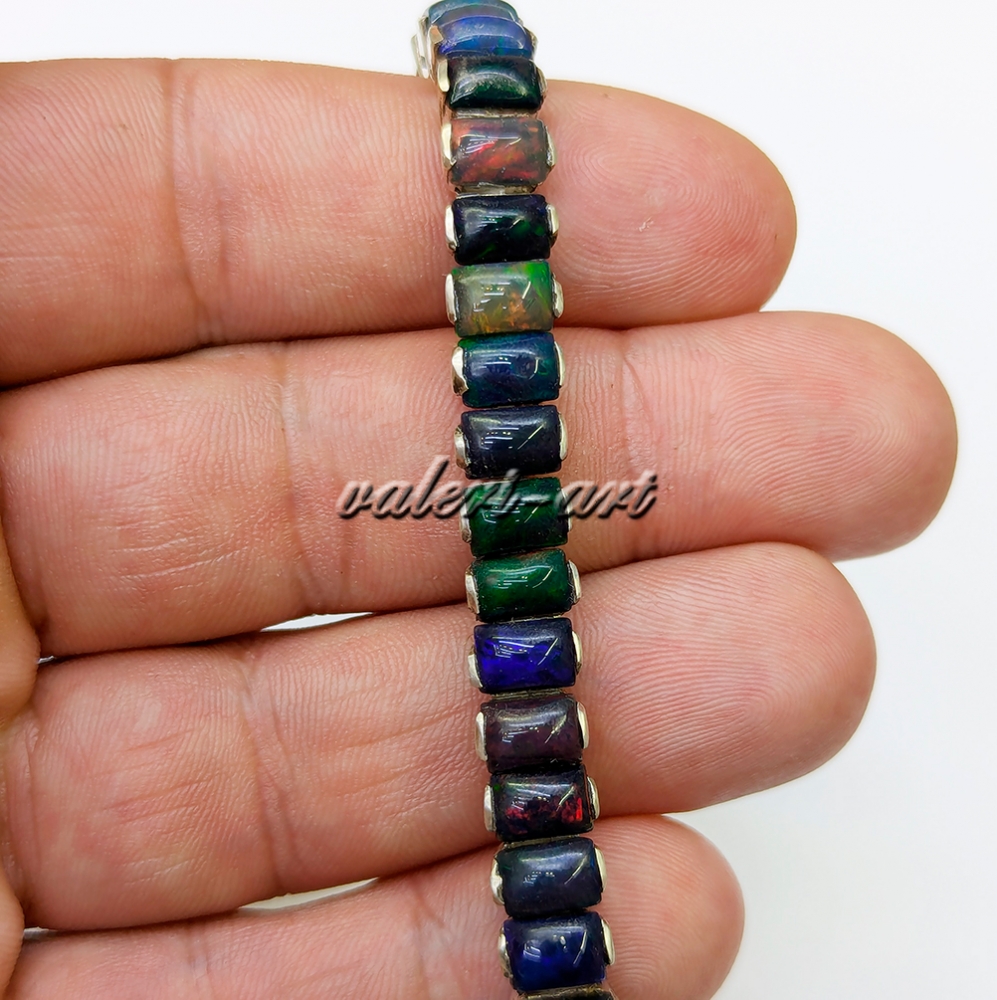 Браслет с черным опалом серебряный