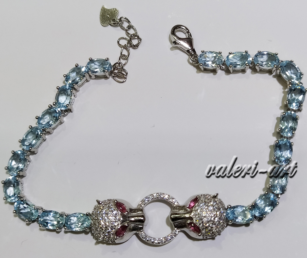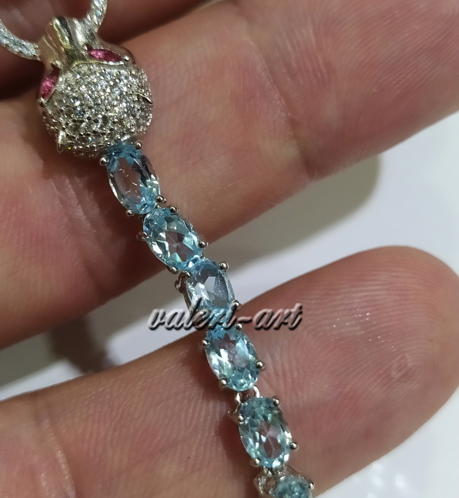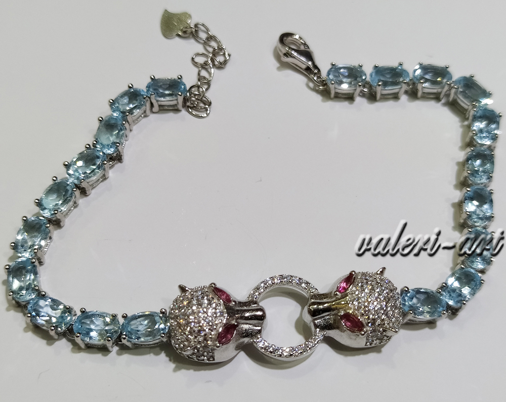 Серебряный браслет с натуральными голубыми топазами и рубинами