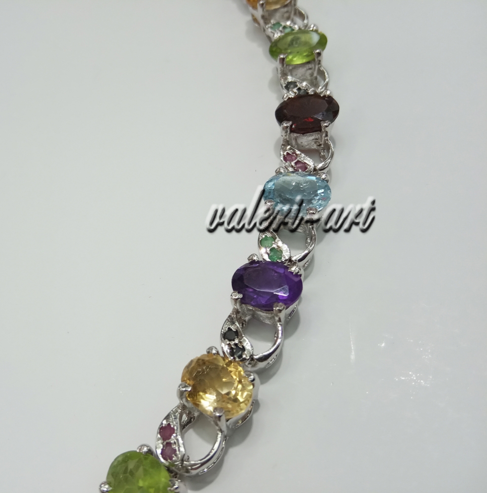 Серебряный браслет с натуральными аметистами, цитринами, хризолитами, топазами, гранатами