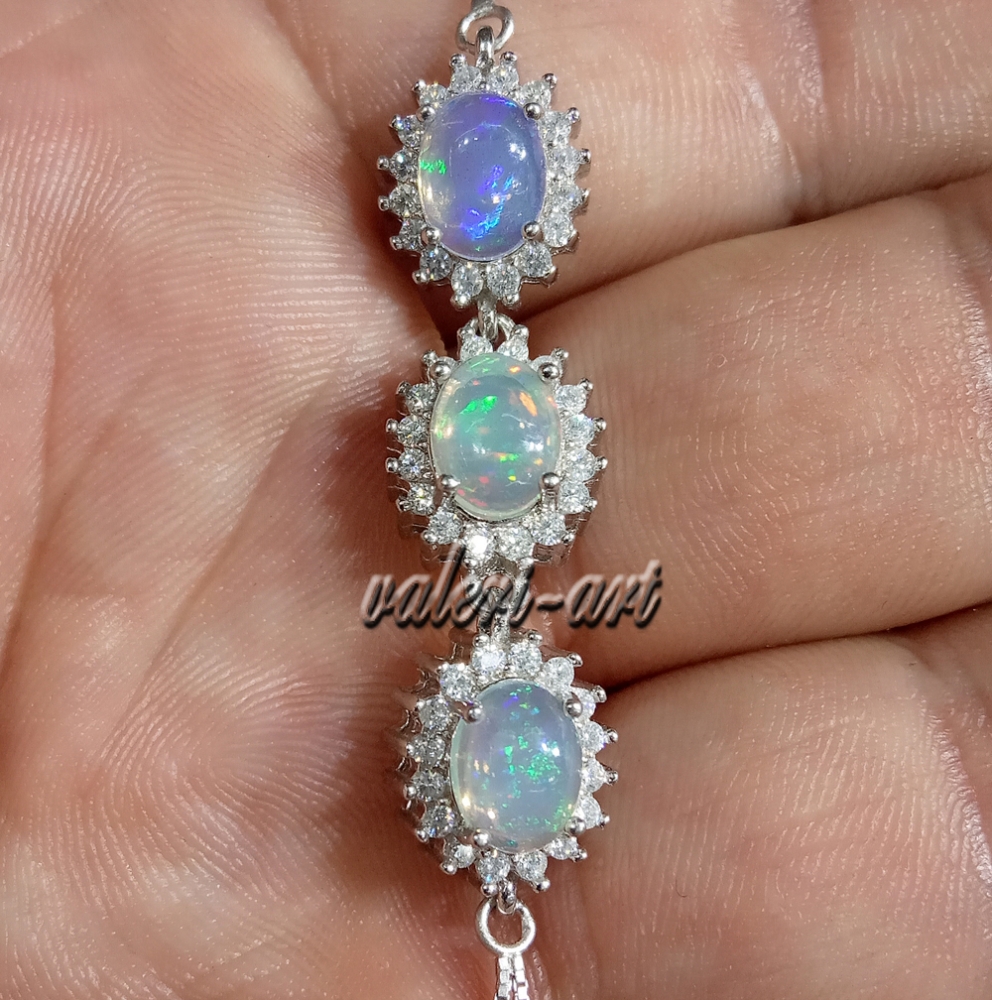 Стильный браслет из натурального опала и серебра 925 пробы. Классическое сочетание цветов в классическом дизайне, всегда беспроигрышный вариант! Интересный, яркий, обязательно станет вашим самым любимым украшением! Использовано качественное серебро 925 пробы. Вы можете выбрать понравившиеся изделия или украшения из нашего каталога, в котором представлен широкий ассортимент украшений, подарков, сувениров, амулетов, оберегов, талисманов, колье, бус, браслетов, колец, серёг, ожерелий из камня опал. А также узнать лечебные и магические свойства камня, посмотреть фото украшений и ювелирных изделий, подобрать камни по знакам зодиака и амулеты из драгоценного камня опал.
