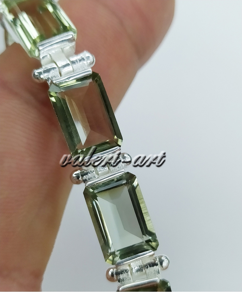 Серебряный браслет с натуральным празеолитом ( зелёным аметистом)
