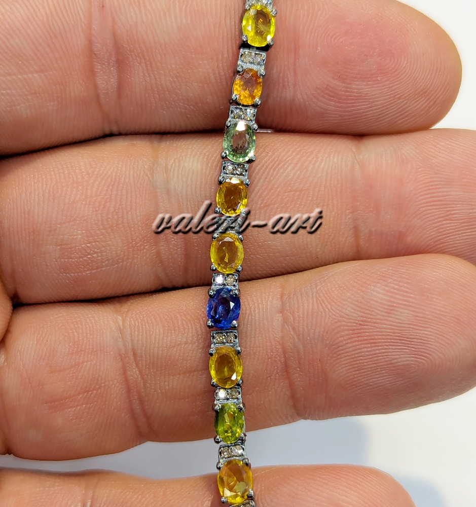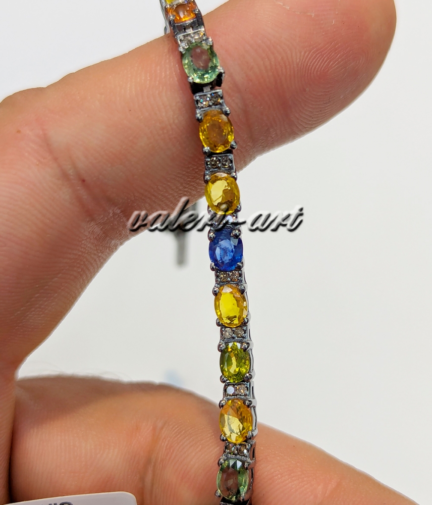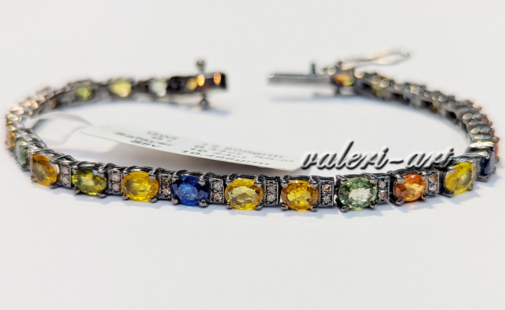 Серебряный браслет с натуральным сапфиром и бриллиантами