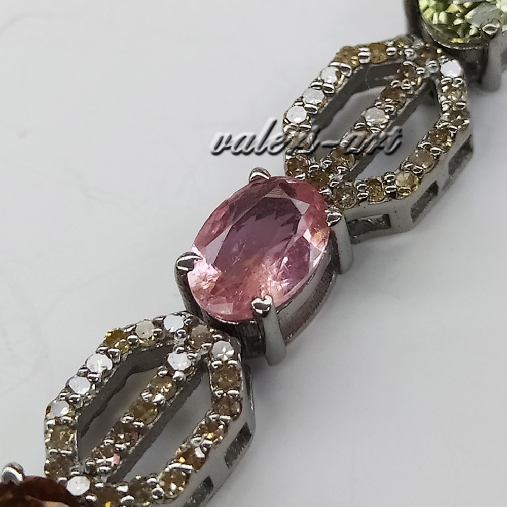 Серебряный браслет с натуральными турмалинами и бриллиантами