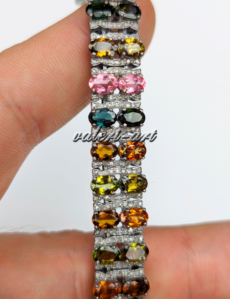Серебряный браслет с натуральным турмалином и бриллиантами