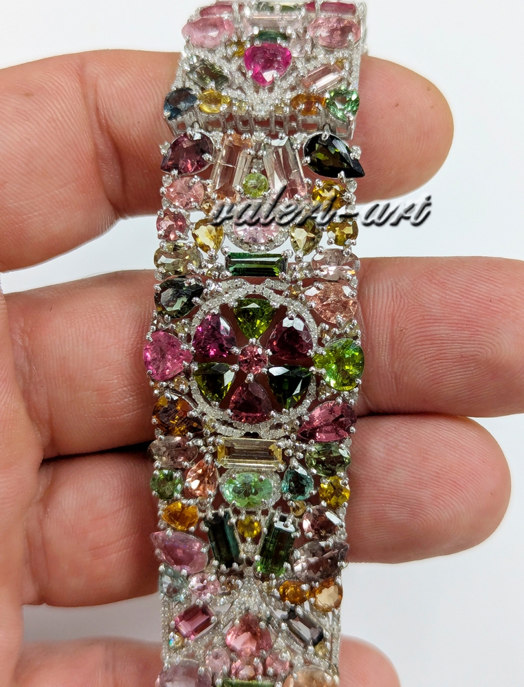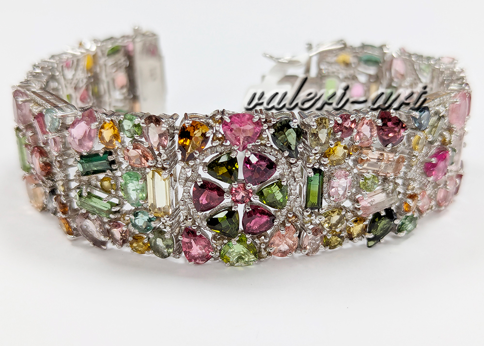 Серебряный браслет с натуральным турмалином и бриллиантами