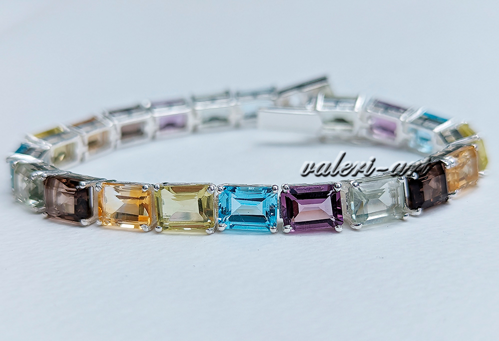 Серебряный браслет с аметистом гранатом цитрином топазом
