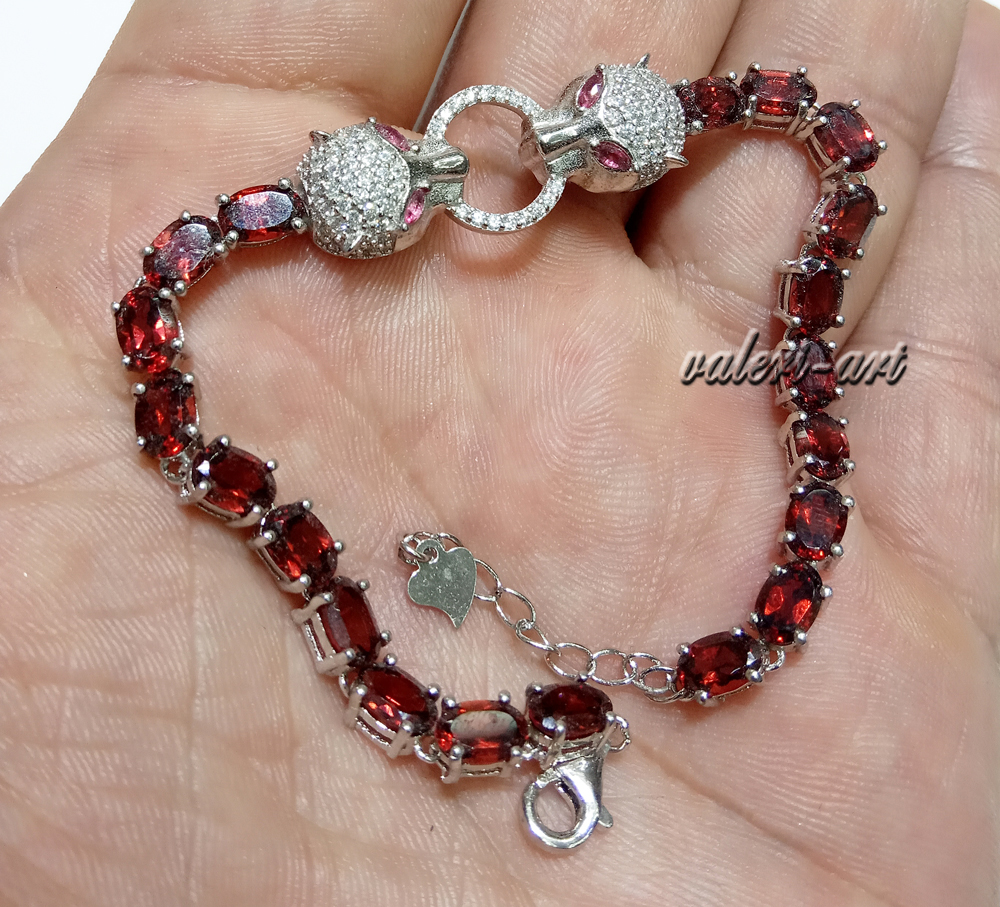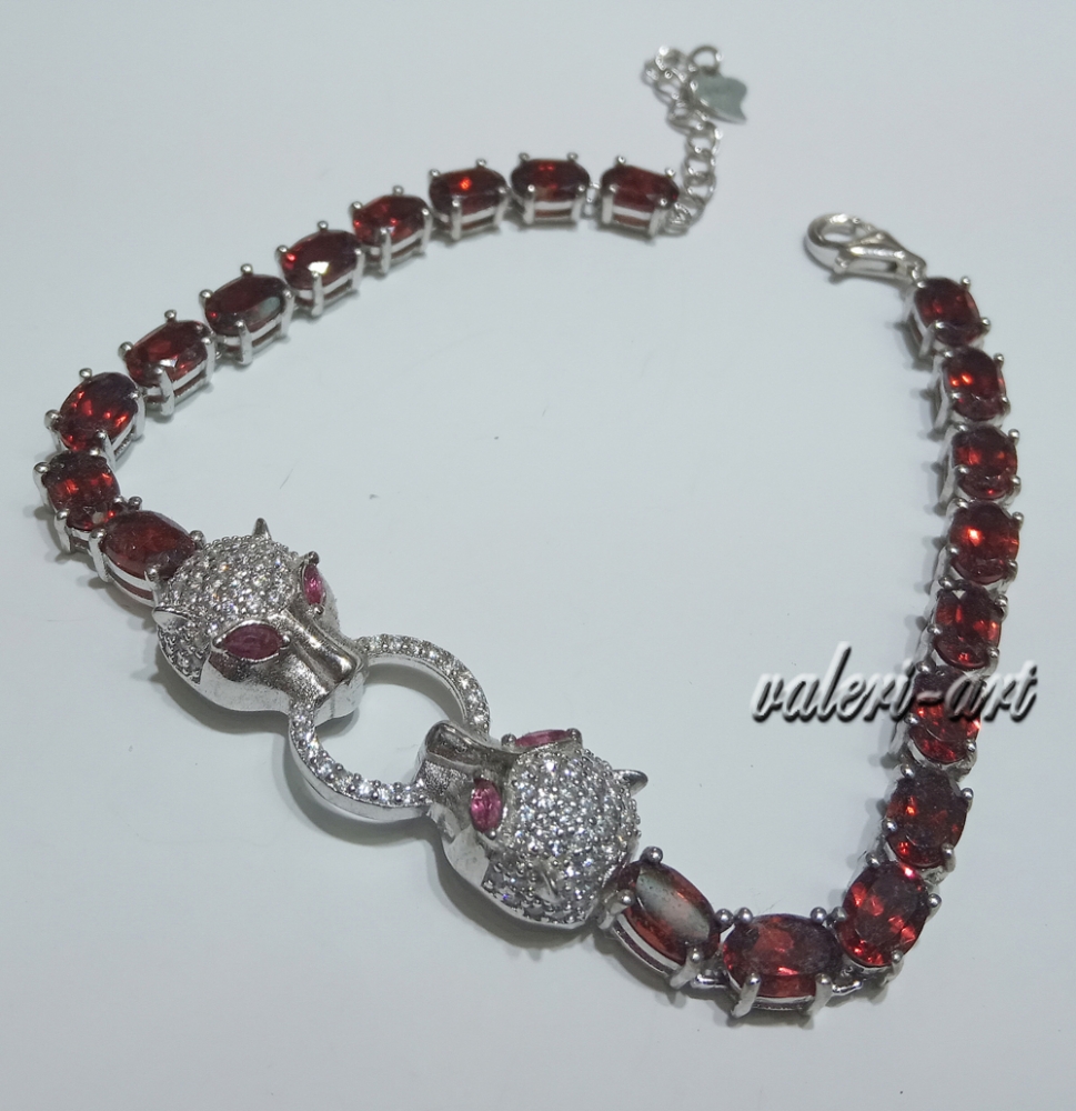 Стильный браслет из натурального граната из серебра 925 пробы. Классическое сочетание цветов в классическом дизайне, всегда беспроигрышный вариант! Интересный, яркий, обязательно станет вашим самым любимым украшением! Использована качественное серебро 925 пробы. Вы можете выбрать понравившиеся изделия или украшения из нашего каталога, в котором представлен широкий ассортимент украшений, подарков, сувениров, амулетов, оберегов, талисманов, колье, бус, браслетов, колец, серёг, ожерелий из камня гранат. А также узнать лечебные и магические свойства камня, посмотреть фото украшений и ювелирных изделий, подобрать камни по знакам зодиака и амулеты из драгоценного камня гранат.