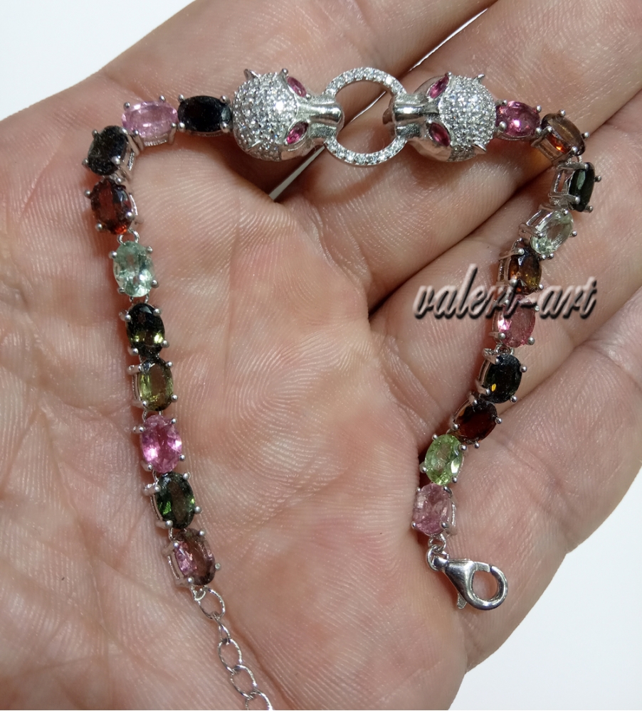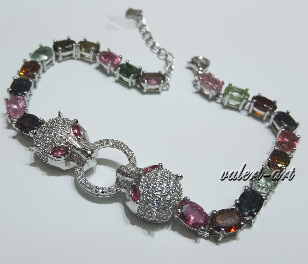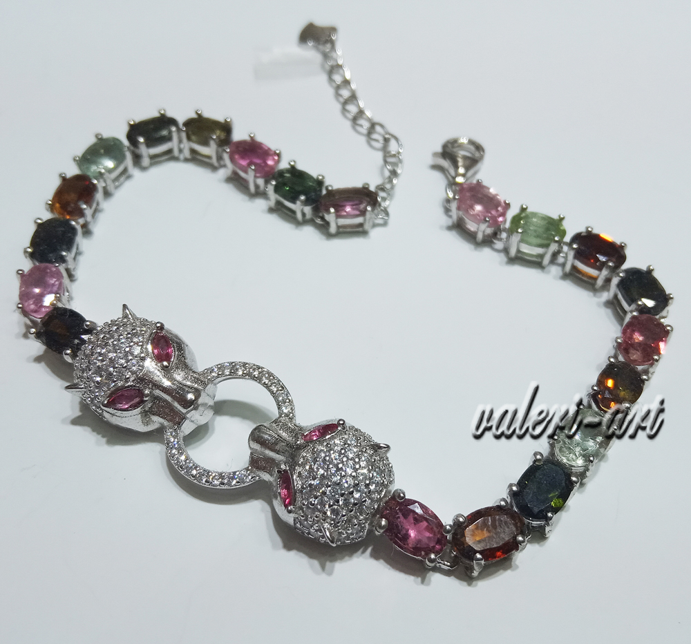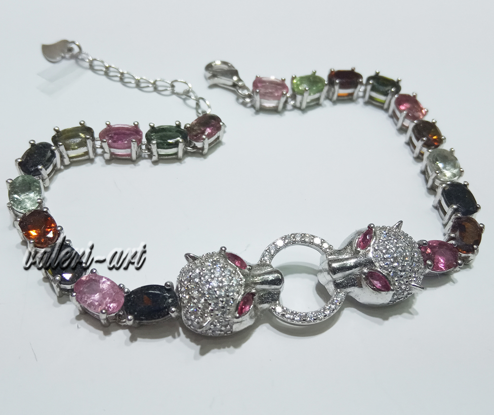 Стильный браслет из натурального турмалина из серебра 925 пробы. Классическое сочетание цветов в классическом дизайне, всегда беспроигрышный вариант! Интересный, яркий, обязательно станет вашим самым любимым украшением! Использовано качественное серебро 925 пробы. Вы можете выбрать понравившиеся изделия или украшения из нашего каталога, в котором представлен широкий ассортимент украшений, подарков, сувениров, амулетов, оберегов, талисманов, колье, бус, браслетов, колец, серёг, ожерелий из камня турмалин. А также узнать лечебные и магические свойства камня, посмотреть фото украшений и ювелирных изделий, подобрать камни по знакам зодиака и амулеты из драгоценного камня турмалин.