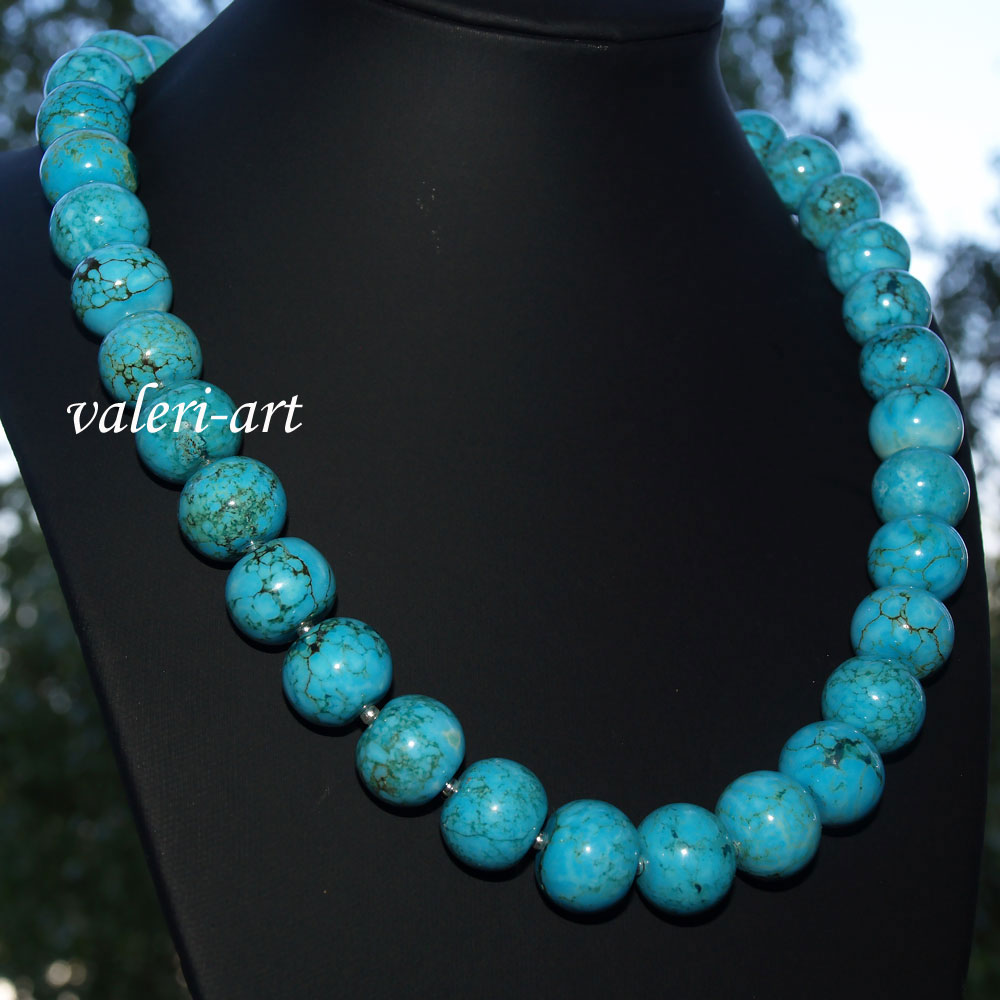 Колье, бусы из бирюзы.Украшения из драгоценного камня бирюза Отличное колье, в жизни еще красивее, чем на фото. Надеюсь носить долго и с радостью!