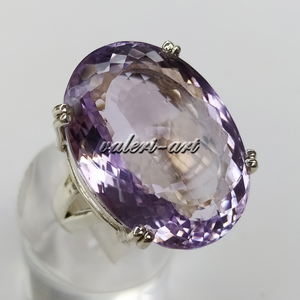 Серебряное кольцо с натуральным светлым крупным аметистом