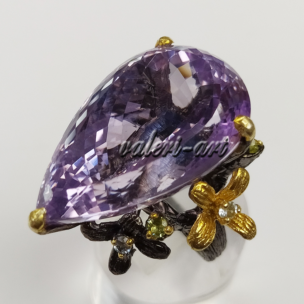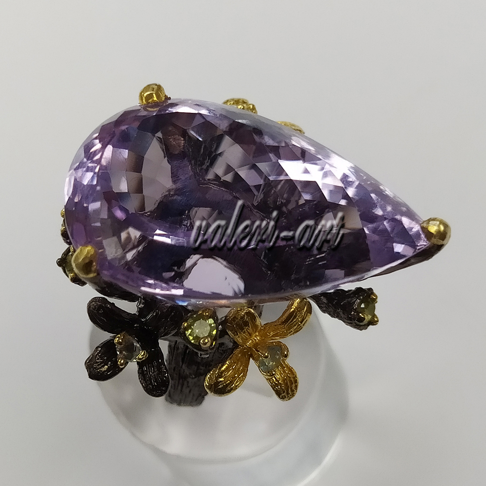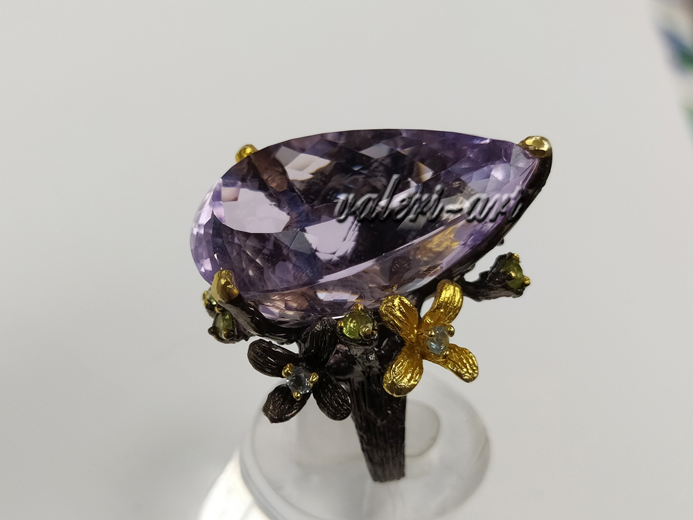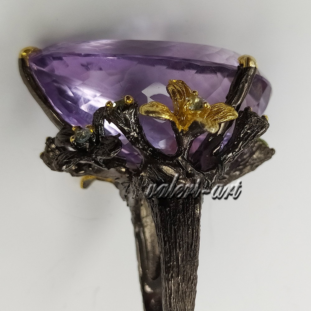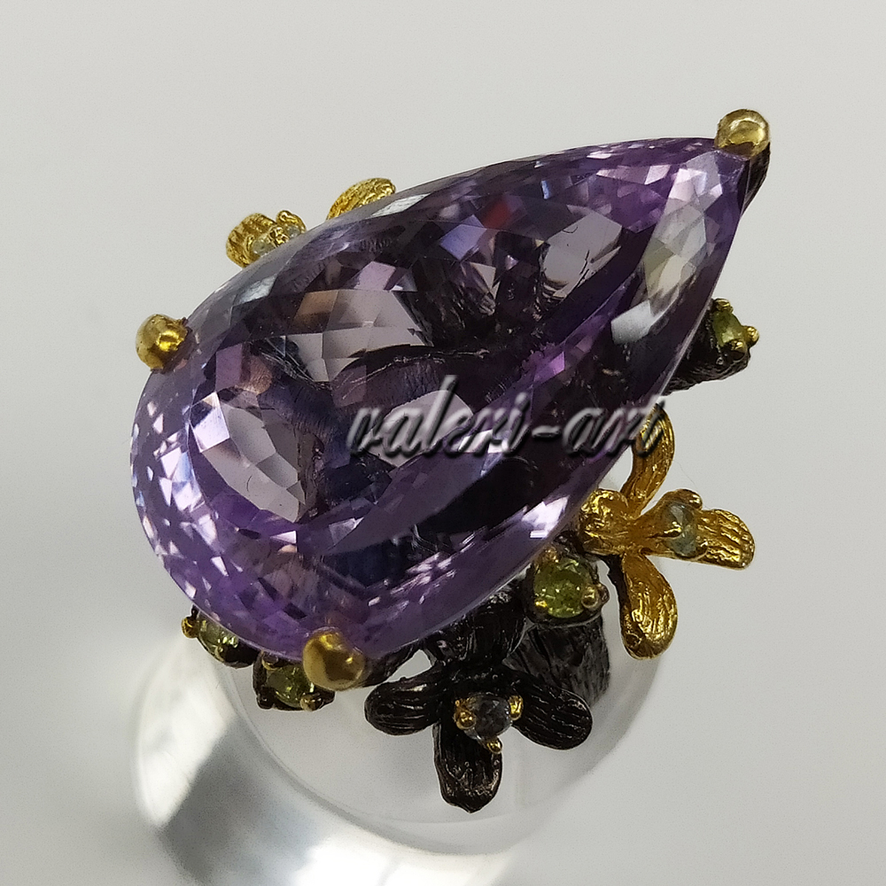 Серебряное авторское кольцо с натуральным крупным аметистом