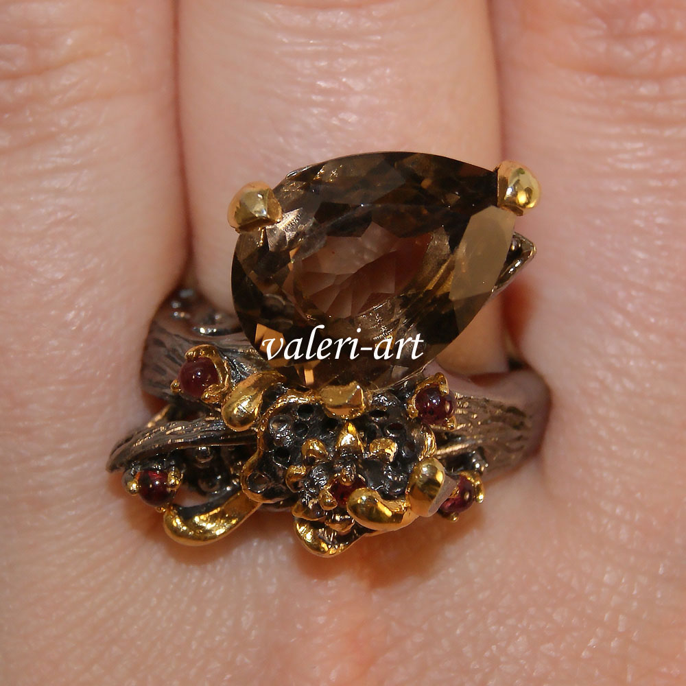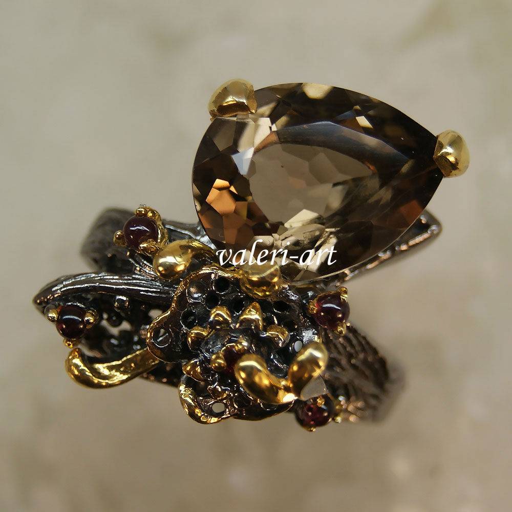 В нашем интернет-магазине авторских украшений и подарков с натуральными камнями Вы можете купить натуральный драгоценный камень раухтопаз и гранат по самой привлекательной и выгодной для Вас цене, а также купить авторское серебряное кольцо в Москве с раухтопазом и гранатом.