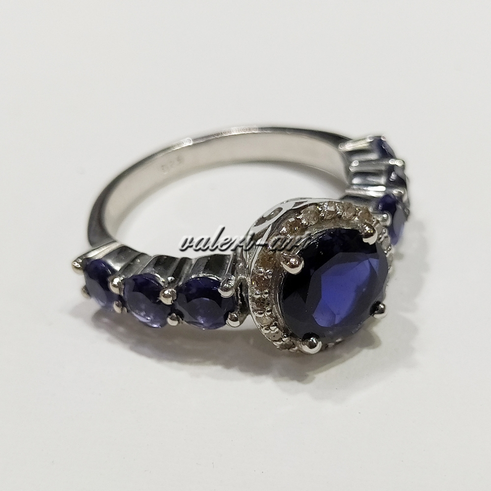 Серебряное кольцо с натуральными танзанитами и бриллиантами