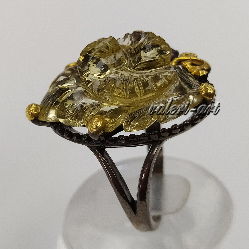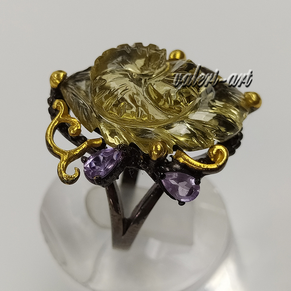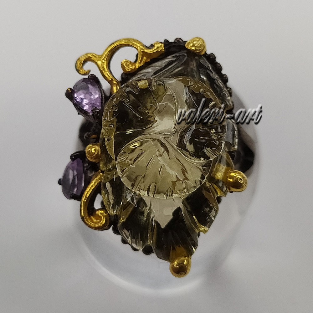 Серебряное авторское кольцо с натуральным топазом и аметистами