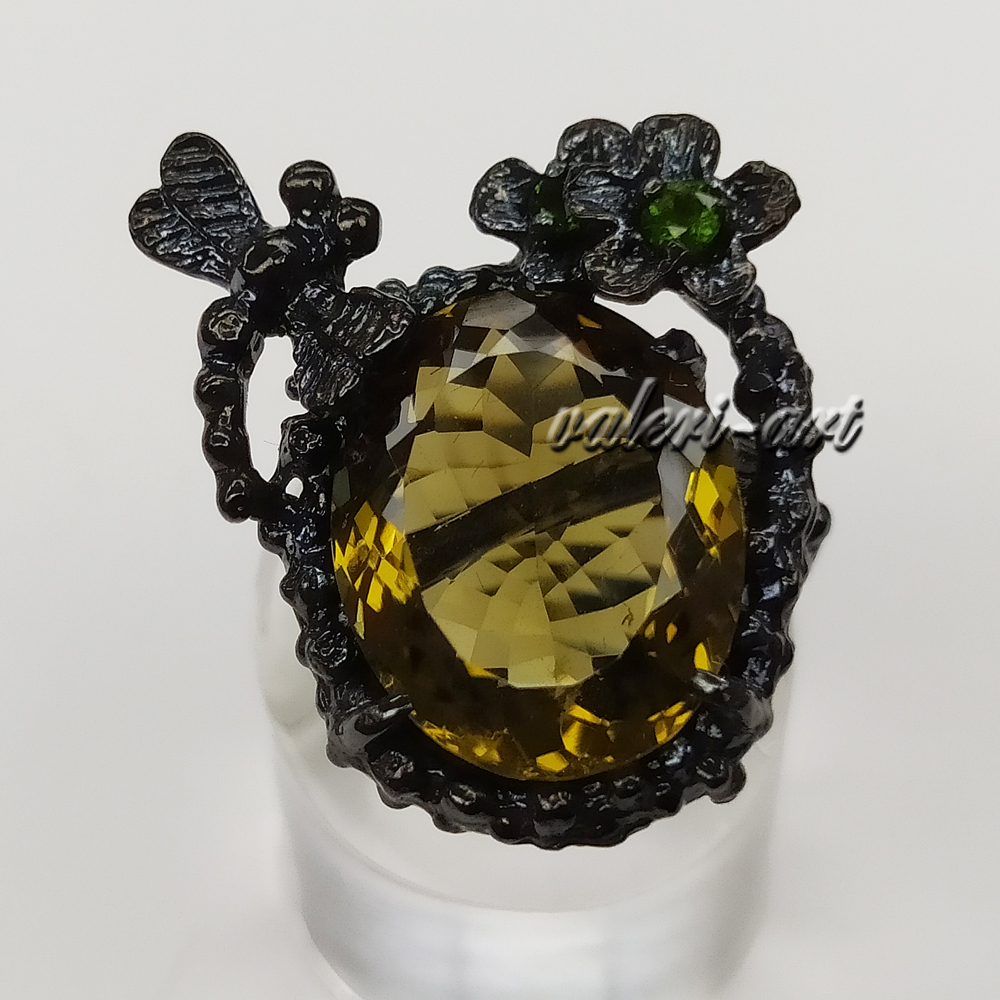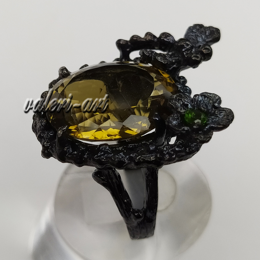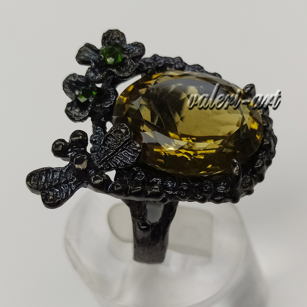 Серебряное авторское кольцо с натуральным золотистым топазом