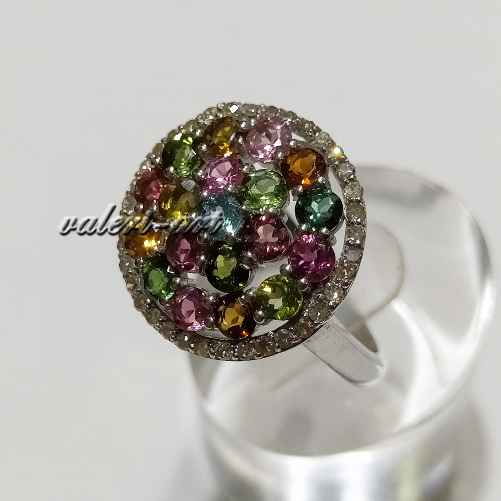 Серебряное кольцо с натуральным турмалином и бриллиантами