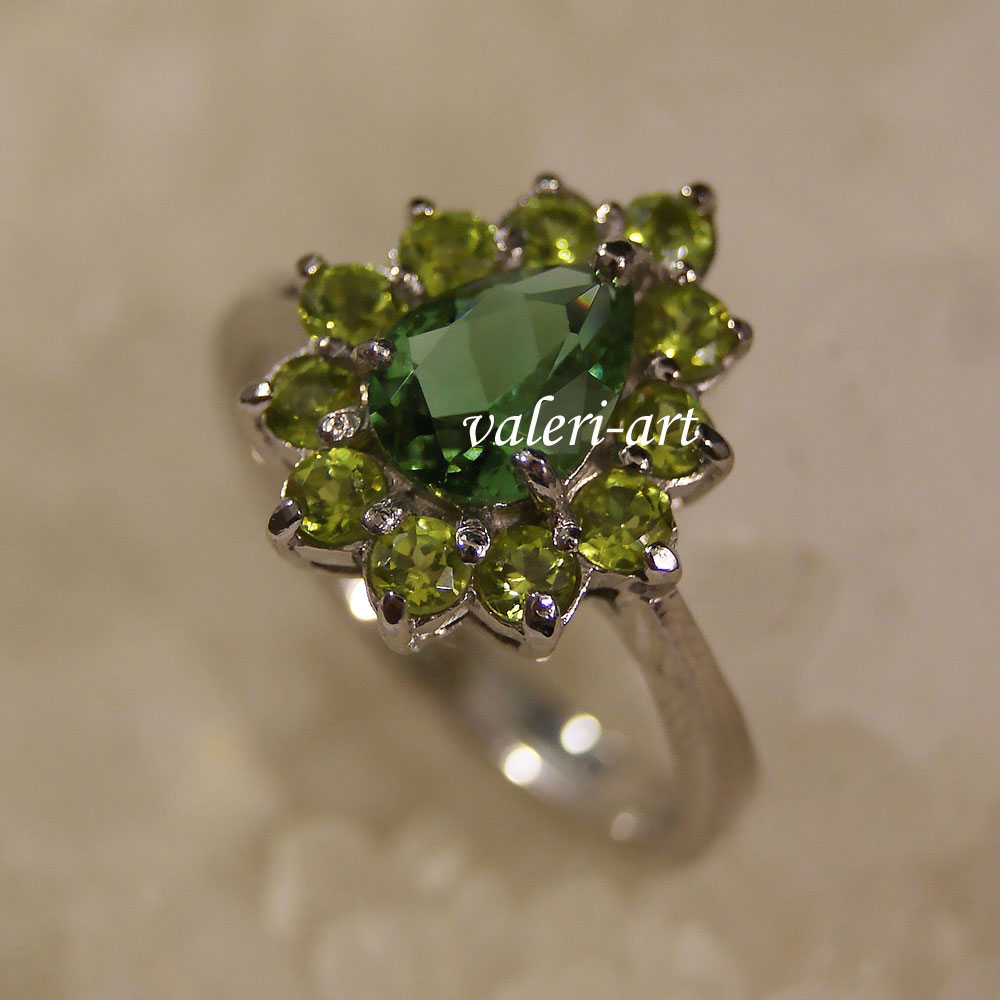 Серебряное кольцо с султанитом г/т. Роскошное кольцо. Очень эффектное, очень яркое украшение из родированного серебра и султанита г/т. Камень меняет свой цвет в зависимости от освещения. Камень то зеленый, то медово-горчичный, то фиолетовый. Идеальный подарок! Способность султанита менять цвет – его главная прелесть и загадка. Известно о таких же свойствах аметиста и александрита, но у нашего камня более разнообразная гамма оттенков. При тусклом освещении или в пасмурный день он зеленый, словно молодая трава. При свете поярче он приобретает коричневые, янтарные, желтые оттенки.