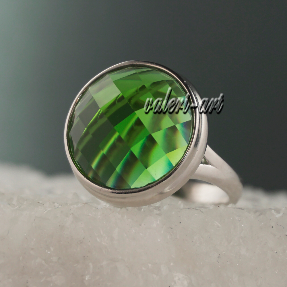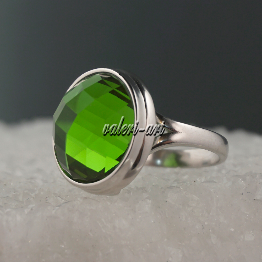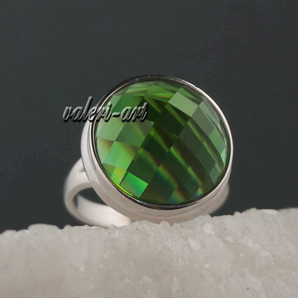 Серебряное кольцо с султанитом г/т. Роскошное кольцо. Очень эффектное, очень яркое украшение из родированного серебра и султанита г/т. Камень меняет свой цвет в зависимости от освещения. Камень то зеленый, то медово-горчичный, то фиолетовый. Идеальный подарок! Способность султанита менять цвет – его главная прелесть и загадка. Известно о таких же свойствах аметиста и александрита, но у нашего камня более разнообразная гамма оттенков. При тусклом освещении или в пасмурный день он зеленый, словно молодая трава. При свете поярче он приобретает коричневые, янтарные, желтые оттенки.
