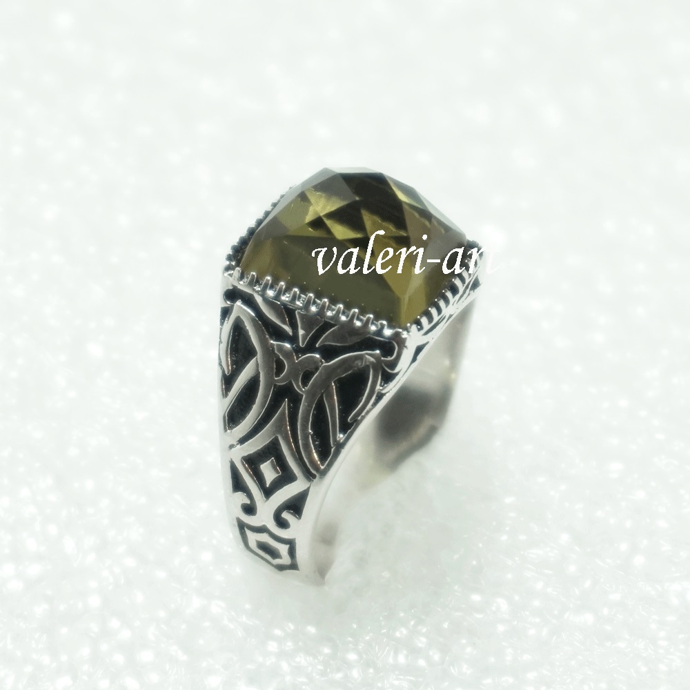 Серебряное мужское кольцо с султанитом г/т . Роскошное кольцо. Очень эффектное, очень яркое украшение из родированного серебра и султанита г/т. Камень меняет свой цвет в зависимости от освещения. Камень то зеленый, то медово-горчичный, то фиолетовый. Идеальный подарок! Способность султанита менять цвет – его главная прелесть и загадка. Известно о таких же свойствах аметиста и александрита, но у нашего камня более разнообразная гамма оттенков. При тусклом освещении или в пасмурный день он зеленый, словно молодая трава. При свете поярче он приобретает коричневые, янтарные, желтые оттенки.