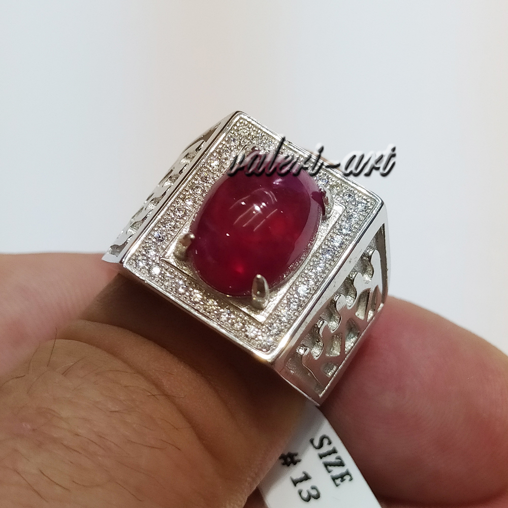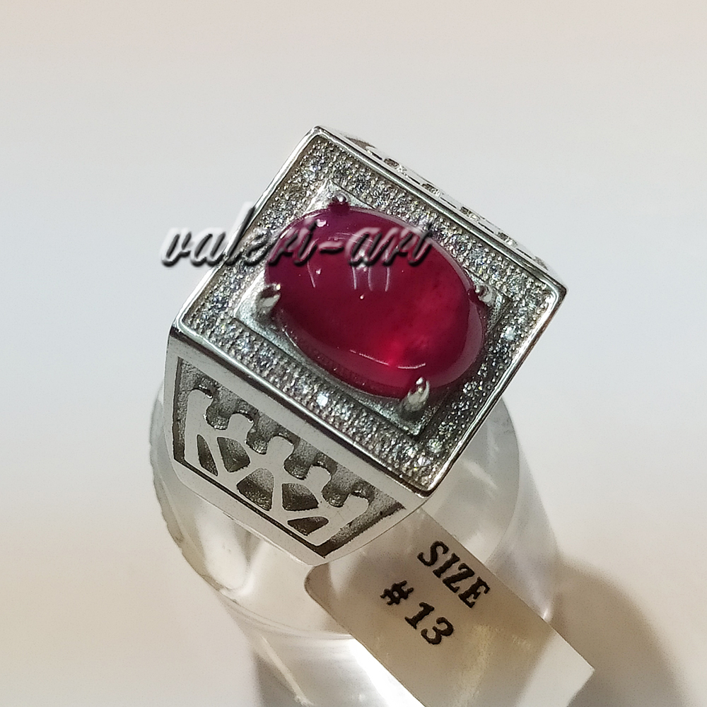 Мужской серебряный перстень с натуральным рубином