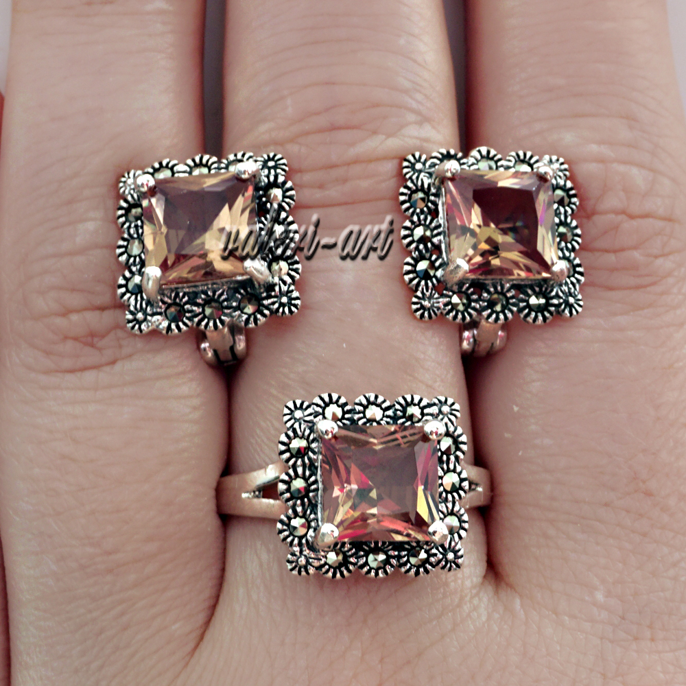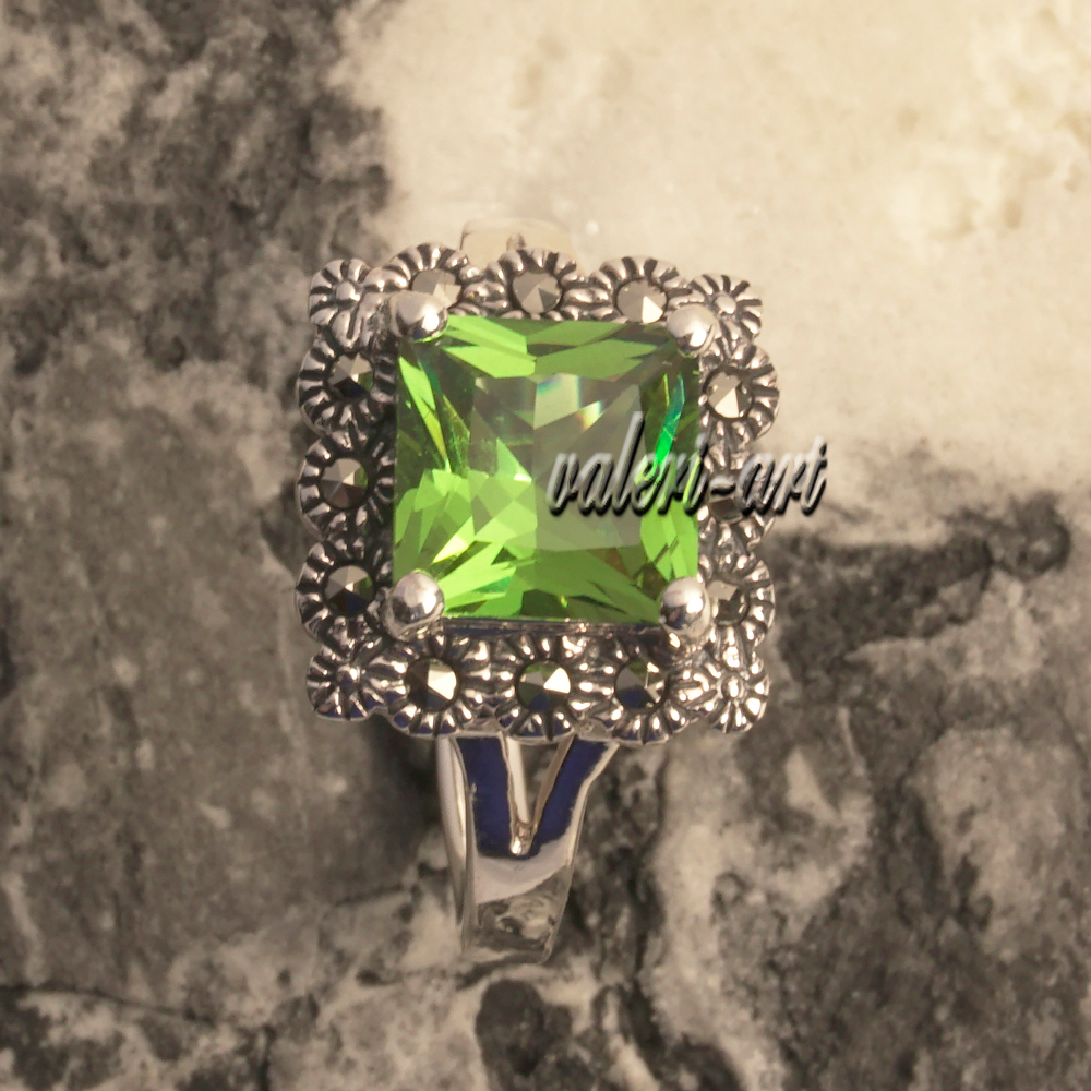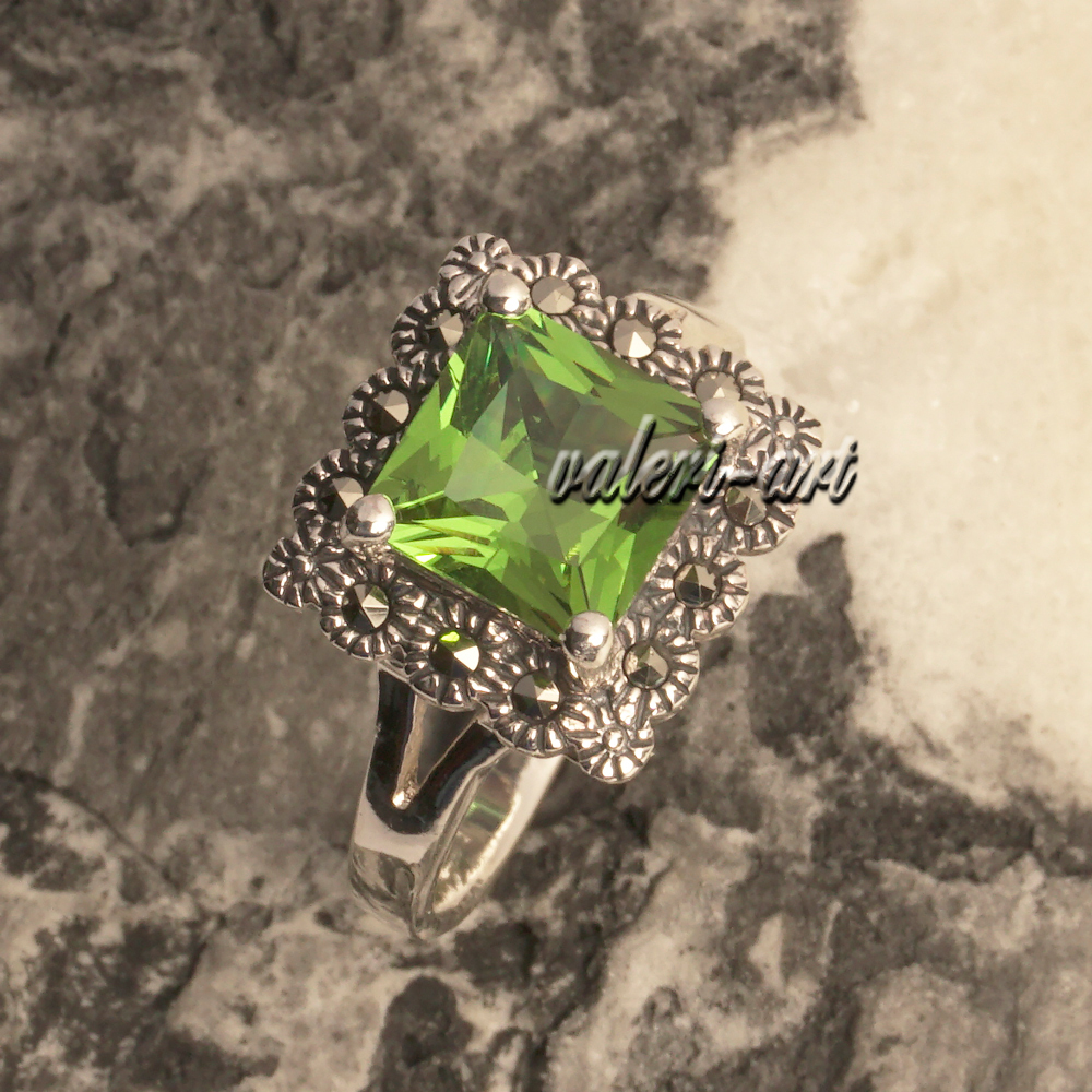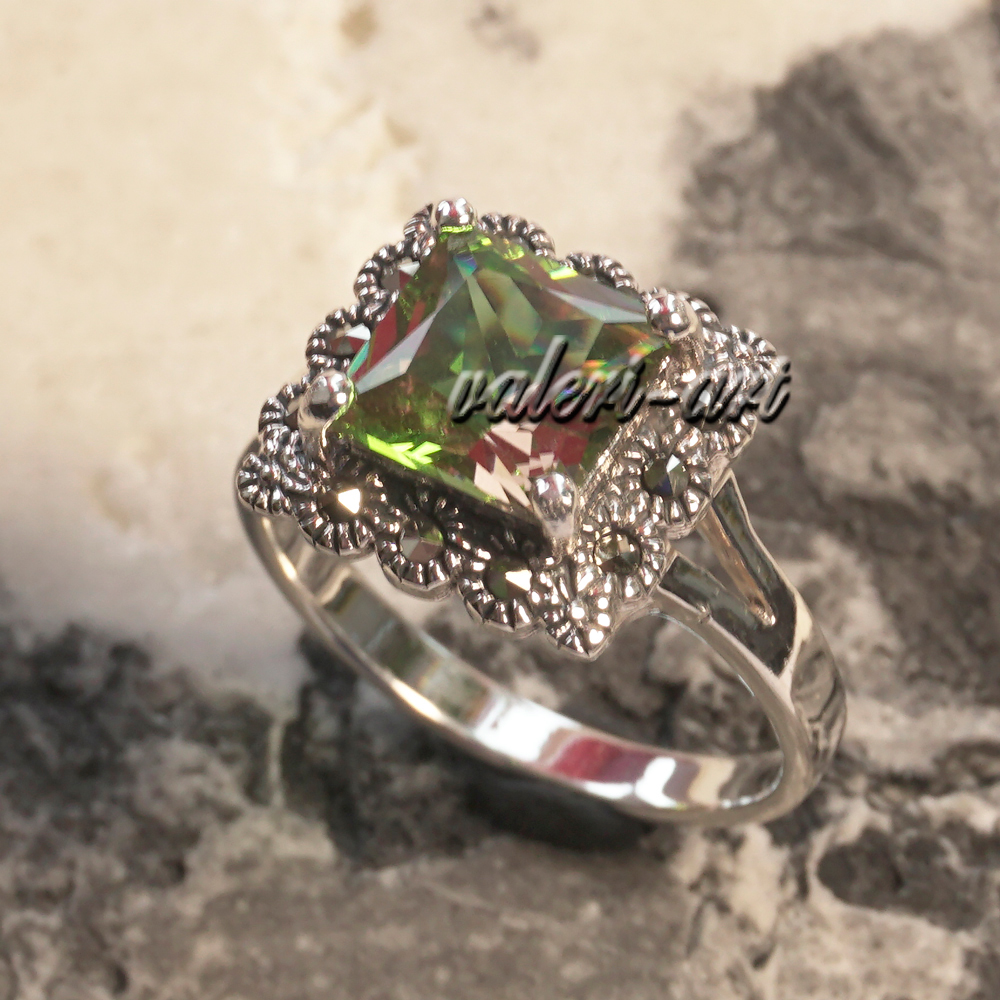 Купить кольцо с султанитами и марказитами в ювелирном бутике Valeri-Art в Москве по сниженным ценам. Большой выбор колец с султанитом и марказитом с актуальными фото. Скидки до -30% при покупке полного комплекта. Серебряное кольцо с султанитом г/т. Роскошное кольцо султанит и марказит в серебре. Очень эффектное, очень яркое украшение из родированного капельного серебра и султанита г/т и марказита. Камень меняет свой цвет в зависимости от освещения. Камень то зеленый, то медово-горчичный, то фиолетовый. Идеальный подарок! Способность султанита менять цвет – его главная прелесть и загадка. Известно о таких же свойствах аметиста и александрита, но у нашего камня более разнообразная гамма оттенков. При тусклом освещении или в пасмурный день он зеленый, словно молодая трава. При свете поярче он приобретает коричневые, янтарные, желтые оттенки.