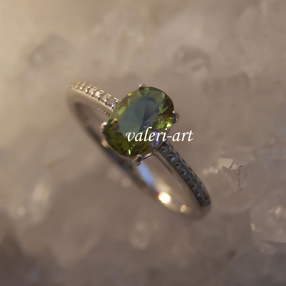 Серебряное кольцо с султанитом г/т. Роскошное кольцо. Очень эффектное, очень яркое украшение из родированного серебра и султанита г/т. Камень меняет свой цвет в зависимости от освещения. Камень то зеленый, то медово-горчичный, то фиолетовый. Идеальный подарок! Способность султанита менять цвет – его главная прелесть и загадка. Известно о таких же свойствах аметиста и александрита, но у нашего камня более разнообразная гамма оттенков. При тусклом освещении или в пасмурный день он зеленый, словно молодая трава. При свете поярче он приобретает коричневые, янтарные, желтые оттенки.
