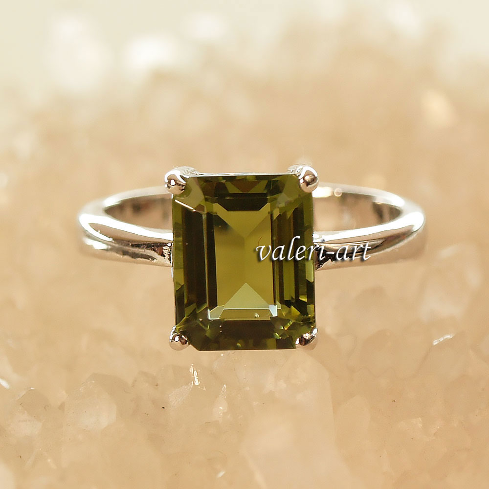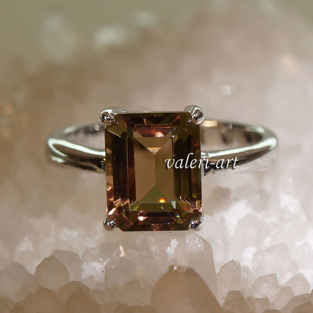 Серебряное кольцо с султанитом г/т. Роскошное кольцо. Очень эффектное, очень яркое украшение из родированного серебра и султанита г/т. Камень меняет свой цвет в зависимости от освещения. Камень то зеленый, то медово-горчичный, то фиолетовый. Идеальный подарок! Способность султанита менять цвет – его главная прелесть и загадка. Известно о таких же свойствах аметиста и александрита, но у нашего камня более разнообразная гамма оттенков. При тусклом освещении или в пасмурный день он зеленый, словно молодая трава. При свете поярче он приобретает коричневые, янтарные, желтые оттенки.
