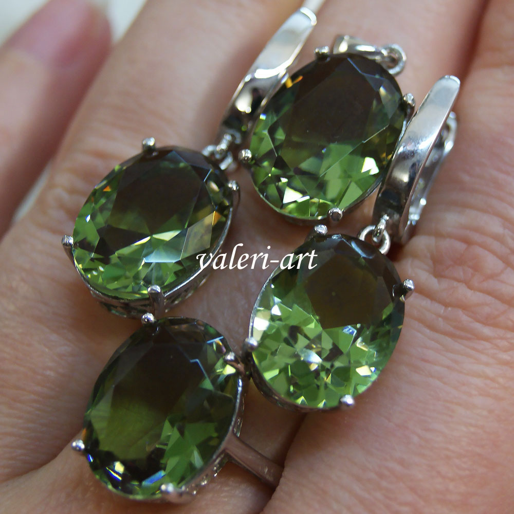 Серебряное кольцо с султанитом г/т. Роскошное кольцо. Очень эффектное, очень яркое украшение из родированного серебра и султанита г/т. Камень меняет свой цвет в зависимости от освещения. Камень то зеленый, то медово-горчичный, то фиолетовый. Идеальный подарок! Способность султанита менять цвет – его главная прелесть и загадка. Известно о таких же свойствах аметиста и александрита, но у нашего камня более разнообразная гамма оттенков. При тусклом освещении или в пасмурный день он зеленый, словно молодая трава. При свете поярче он приобретает коричневые, янтарные, желтые оттенки.