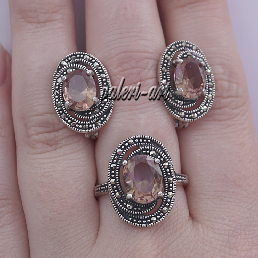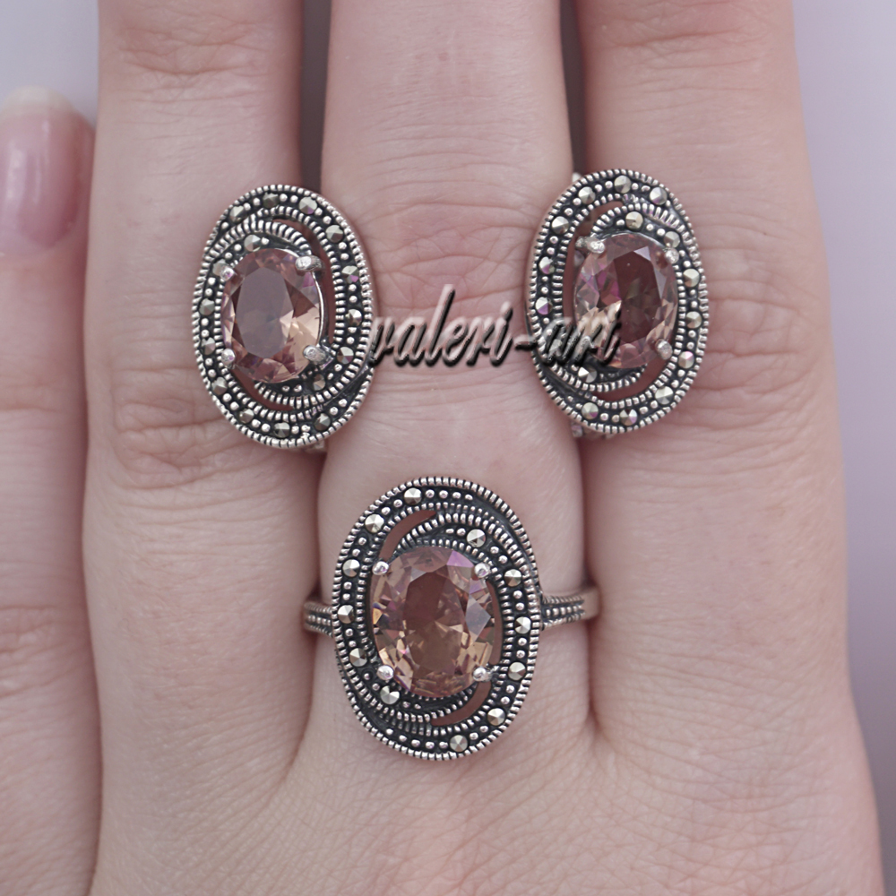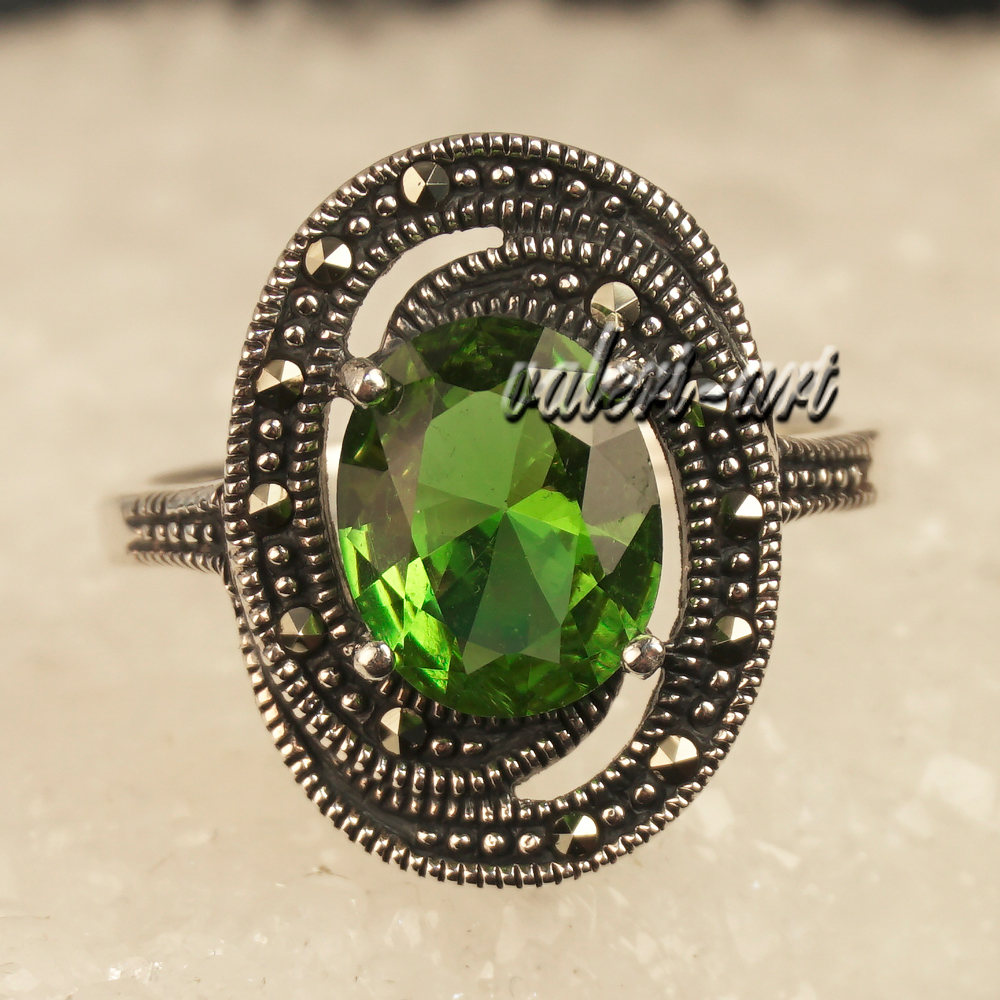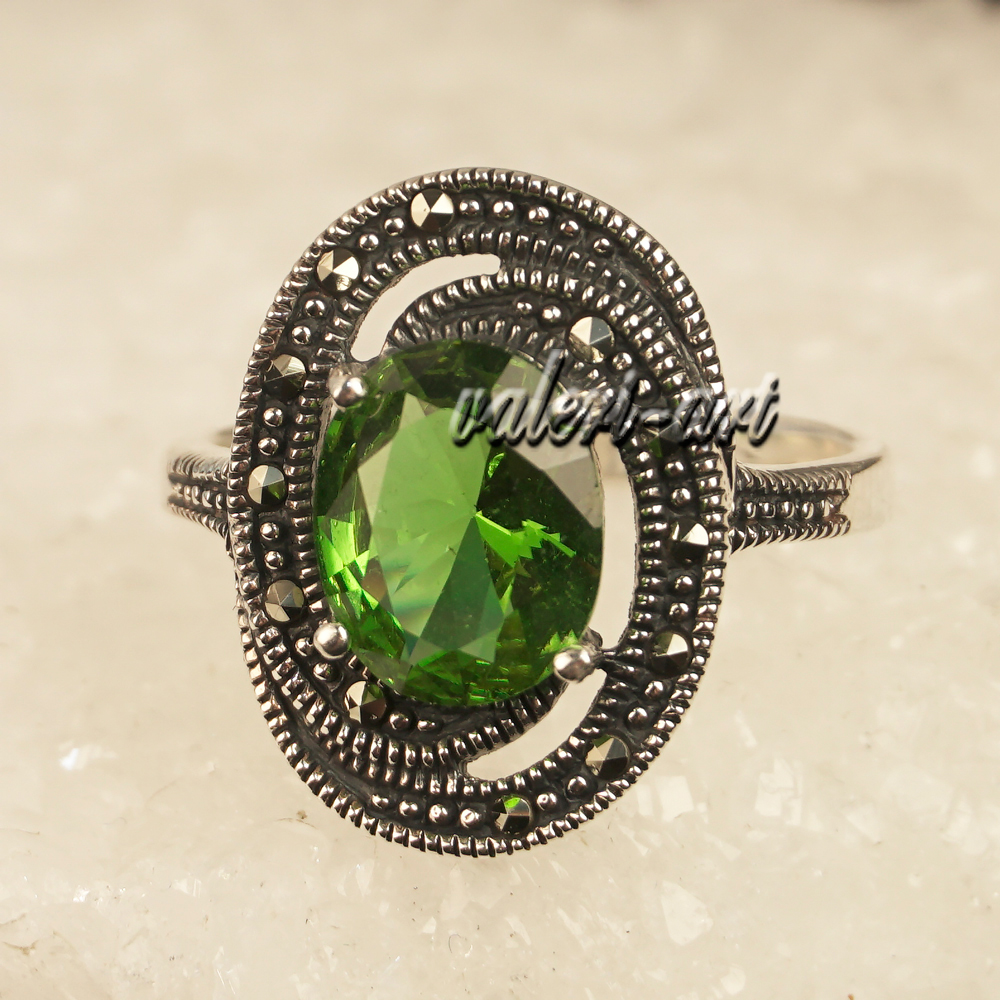 Султанит кольцо из серебра с марказитами