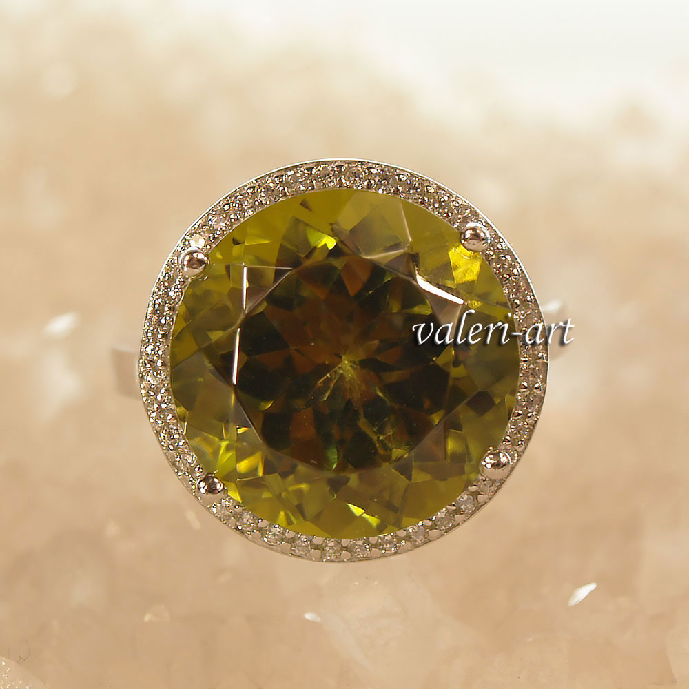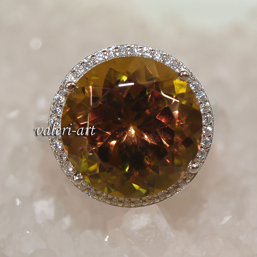 Серебряное кольцо с султанитом г/т. Роскошное кольцо. Очень эффектное, очень яркое украшение из родированного серебра и султанита г/т. Камень меняет свой цвет в зависимости от освещения. Камень то зеленый, то медово-горчичный, то фиолетовый. Идеальный подарок! Способность султанита менять цвет – его главная прелесть и загадка. Известно о таких же свойствах аметиста и александрита, но у нашего камня более разнообразная гамма оттенков. При тусклом освещении или в пасмурный день он зеленый, словно молодая трава. При свете поярче он приобретает коричневые, янтарные, желтые оттенки.