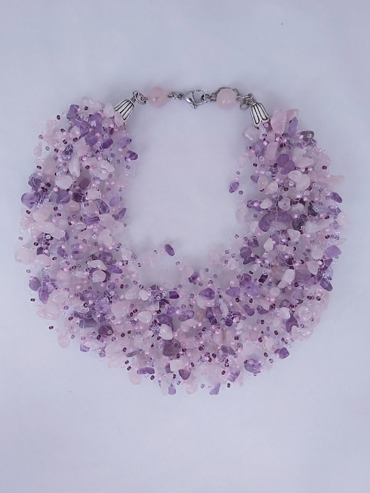 Бусы, колье из аметиста и розового кварца. Ювелирные украшения, украшения своими руками и ювелирные изделия из драгоценного камня аметист и розовый кварц.