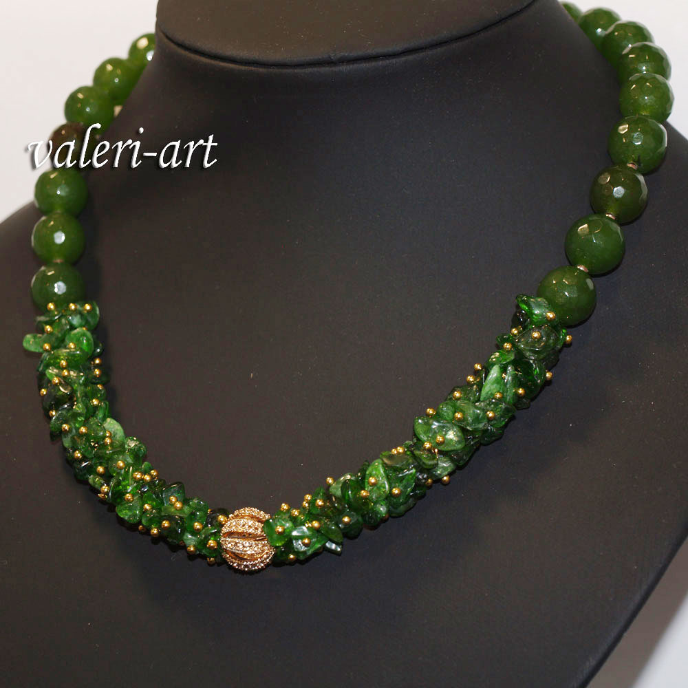 Колье, бусы из хромдиопсида и нефрита. Украшения из хромдиопсида и нефрита