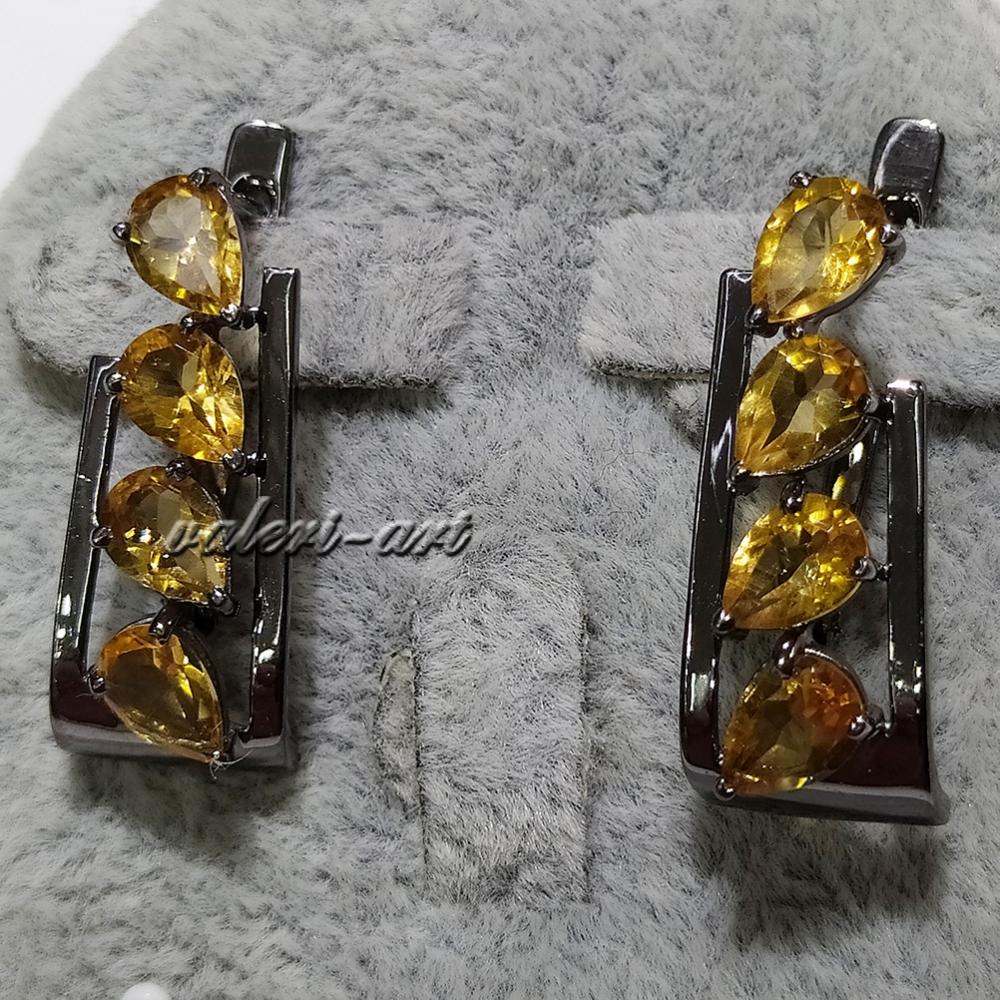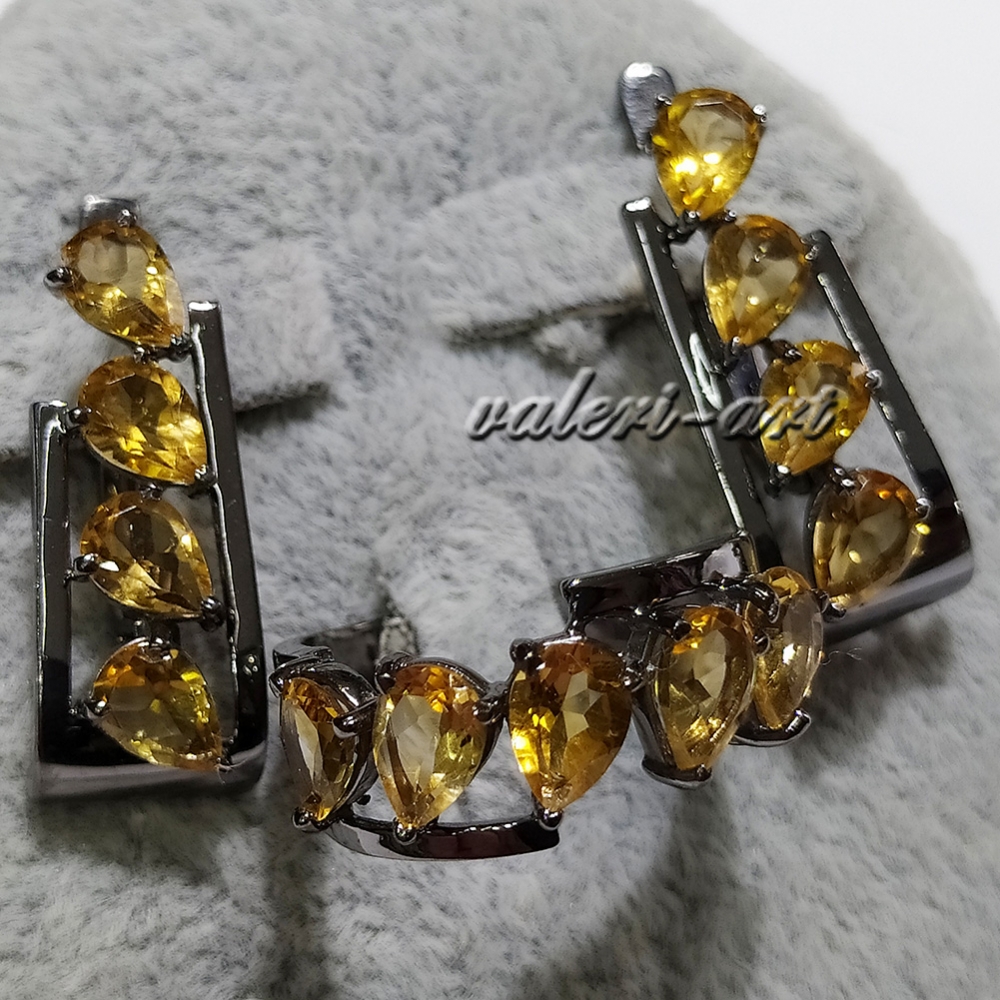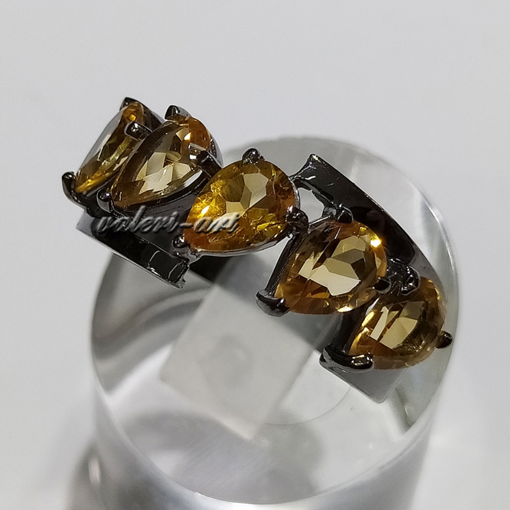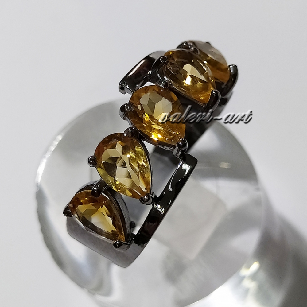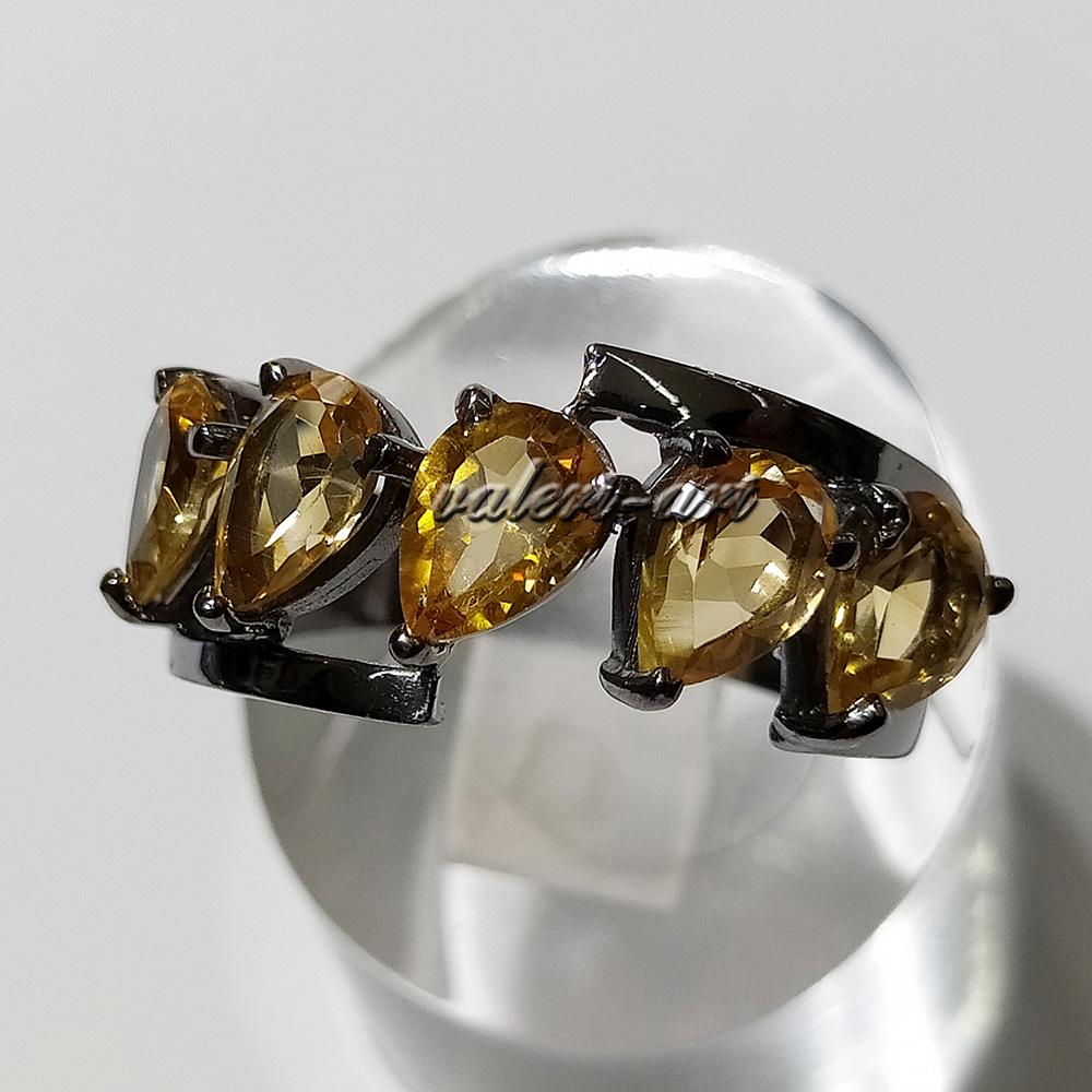 Серебряный комплект кольцо и серьги с натуральными цитринами