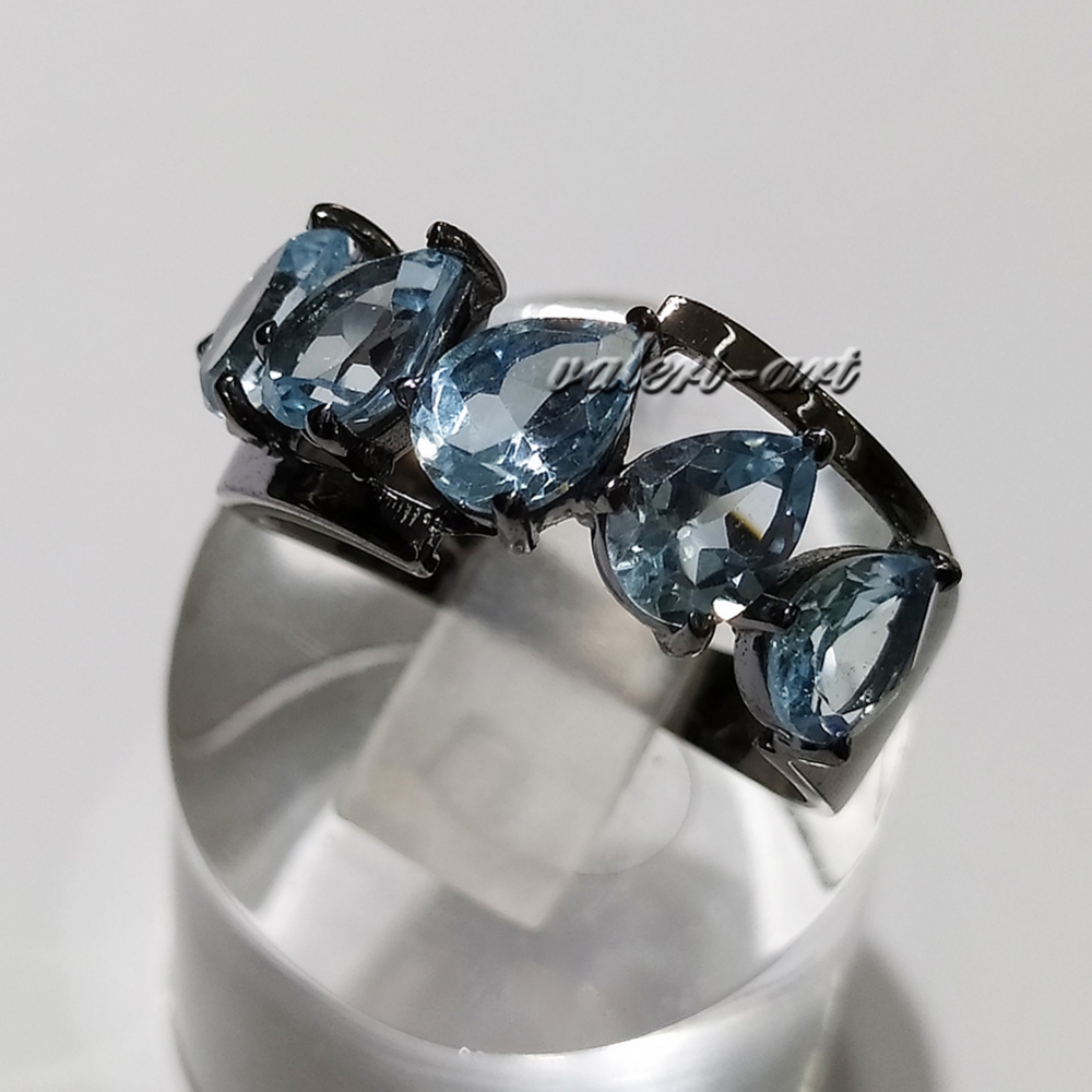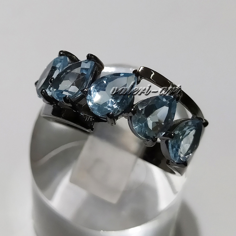 Серебряный комплект кольцо и серьги с натуральными голубыми топазами