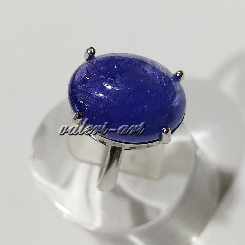 Серебряные серьги и кольцо с натуральными природными крупными танзанитами.