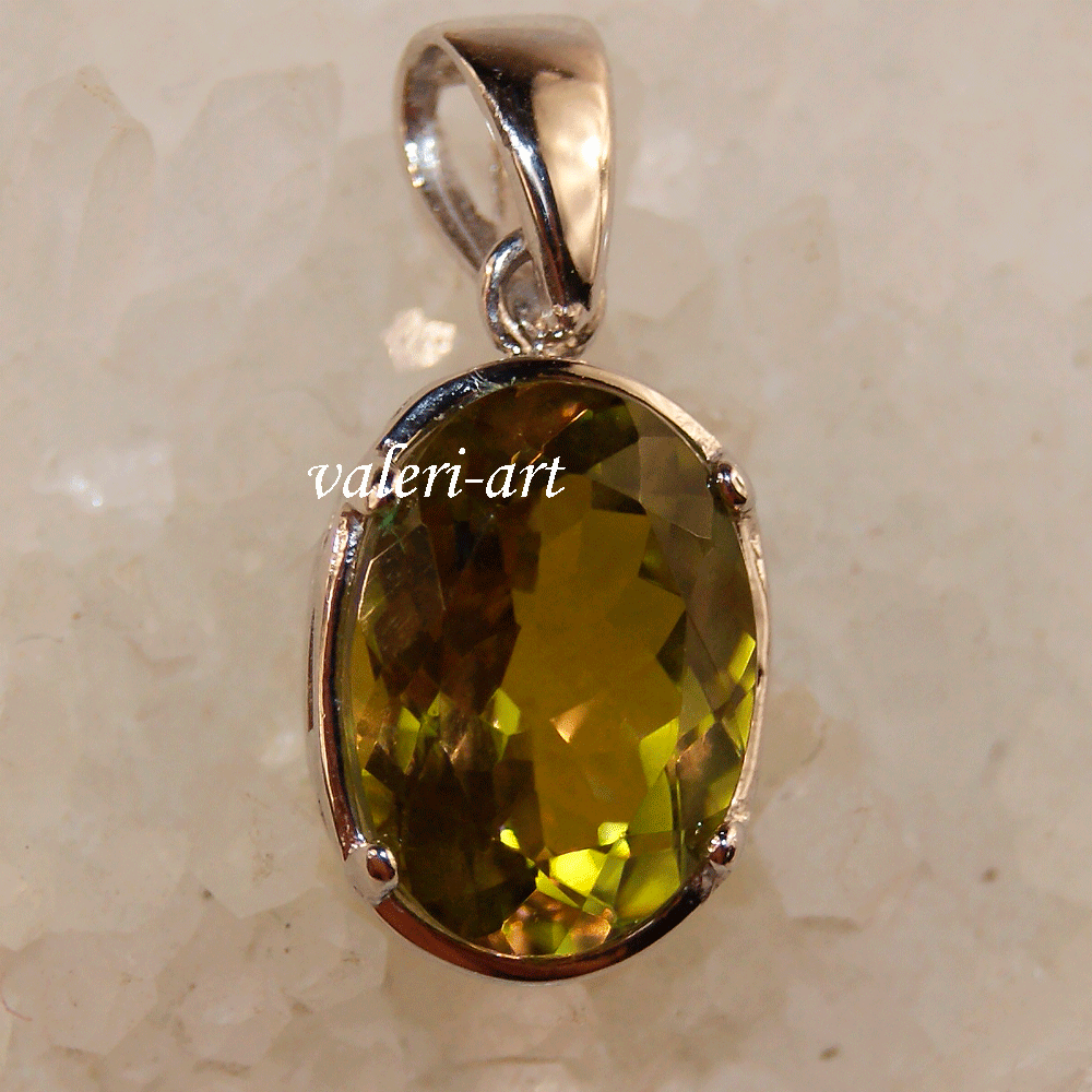 Серебряный кулон с султанитом г/т. Очень эффектное, очень яркое украшение из родированного серебра и султанита г/т. Камень меняет свой цвет в зависимости от освещения. Камень то зеленый, то медово-горчичный, то фиолетовый. Идеальный подарок! Способность султанита менять цвет – его главная прелесть и загадка. Известно о таких же свойствах аметиста и александрита, но у нашего камня более разнообразная гамма оттенков. При тусклом освещении или в пасмурный день он зеленый, словно молодая трава. При свете поярче он приобретает коричневые, янтарные, желтые оттенки.