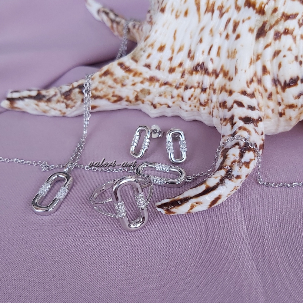 Выполнен из серебра 925 пробы с родиевым покрытием, украшен фианитами