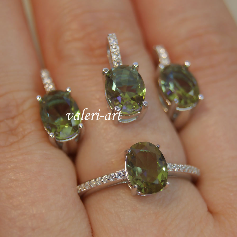 Серебряный кулон с султанитом г/т. Очень эффектное, очень яркое украшение из родированного серебра и султанита г/т. Камень меняет свой цвет в зависимости от освещения. Камень то зеленый, то медово-горчичный, то фиолетовый. Идеальный подарок! Способность султанита менять цвет – его главная прелесть и загадка. Известно о таких же свойствах аметиста и александрита, но у нашего камня более разнообразная гамма оттенков. При тусклом освещении или в пасмурный день он зеленый, словно молодая трава. При свете поярче он приобретает коричневые, янтарные, желтые оттенки.