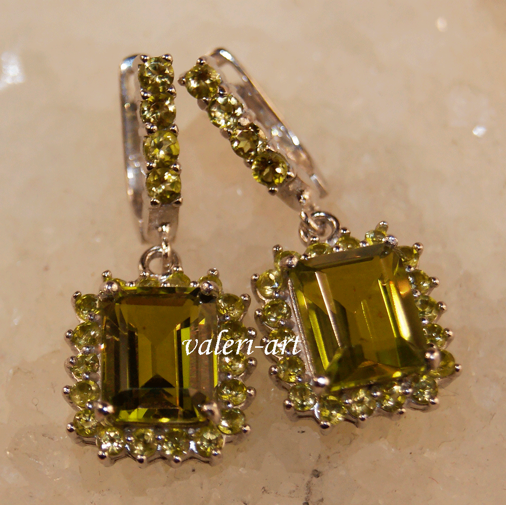 Серебряные серьги с султанитом г/т. Роскошные серьги. Очень эффектное, очень яркое украшение из родированного серебра и султанита г/т. Камень меняет свой цвет в зависимости от освещения. Камень то зеленый, то медово-горчичный, то фиолетовый. Идеальный подарок! Способность султанита менять цвет – его главная прелесть и загадка. Известно о таких же свойствах аметиста и александрита, но у нашего камня более разнообразная гамма оттенков. При тусклом освещении или в пасмурный день он зеленый, словно молодая трава. При свете поярче он приобретает коричневые, янтарные, желтые оттенки.