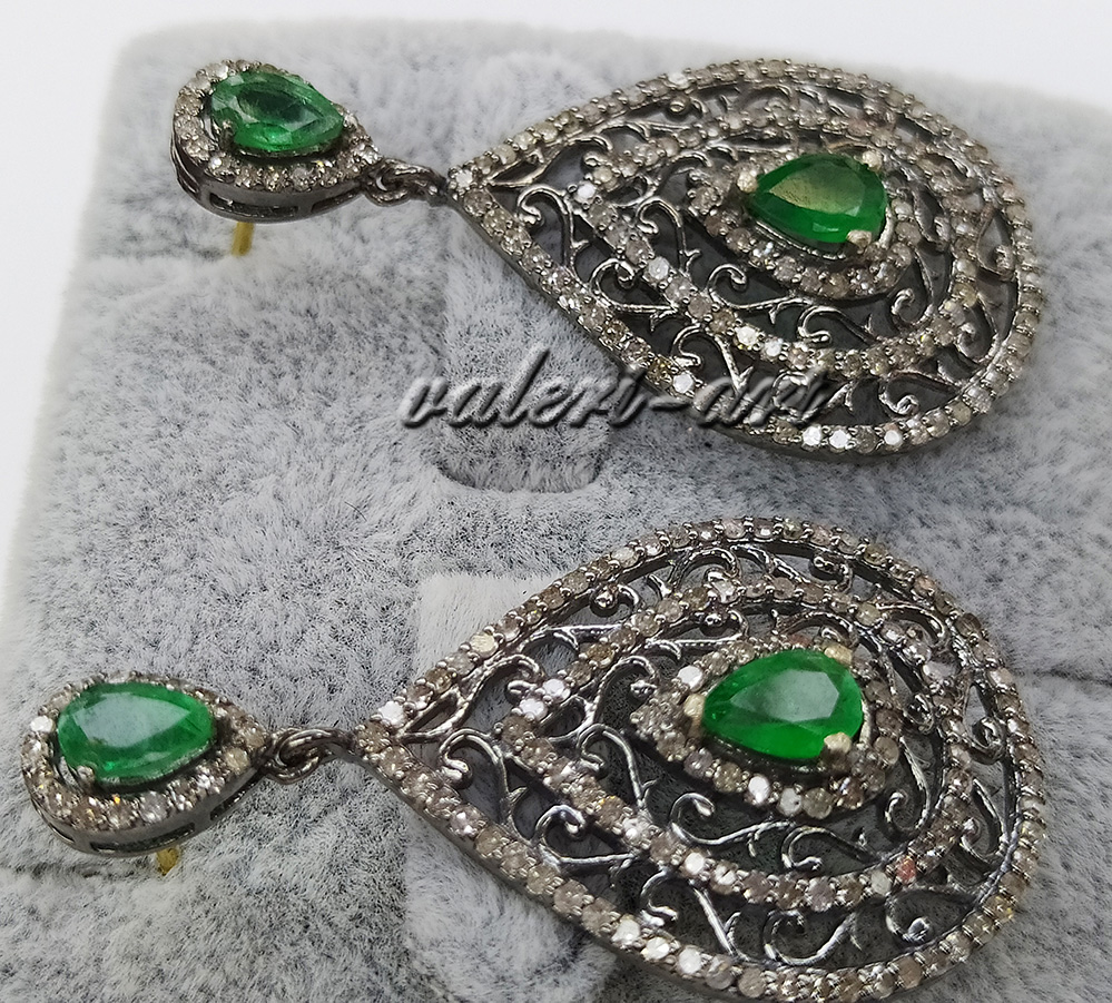 Серьги гвоздики с изумрудом и бриллиантами | Valeri-Art